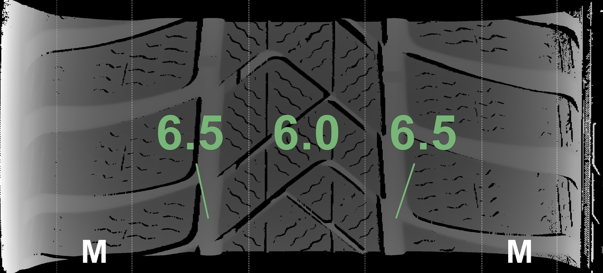 The measured tread depths and details of the rims are shown above.
