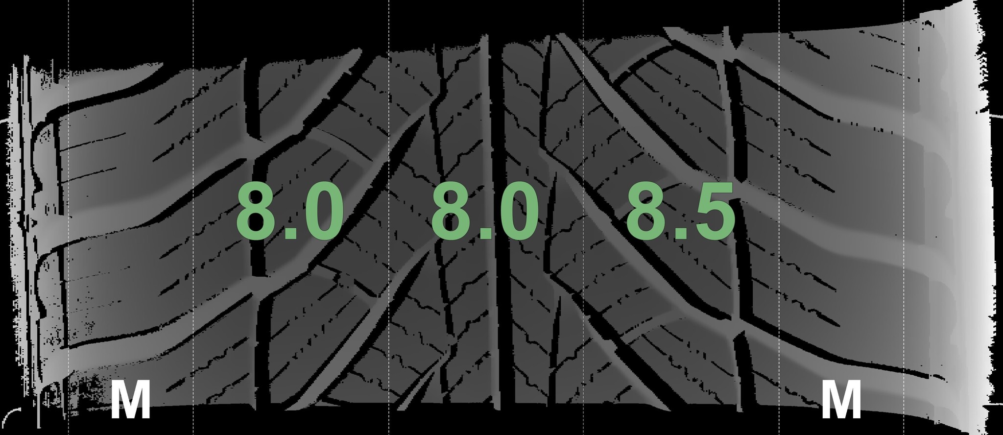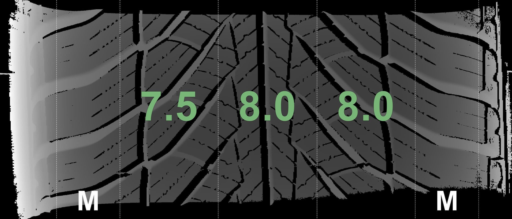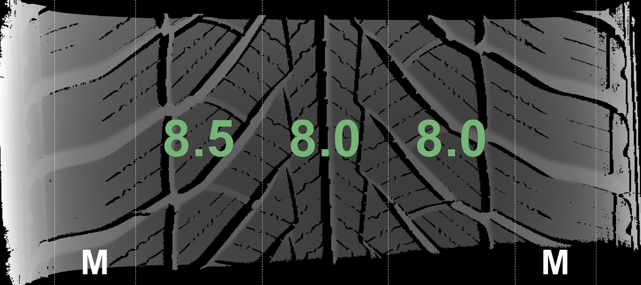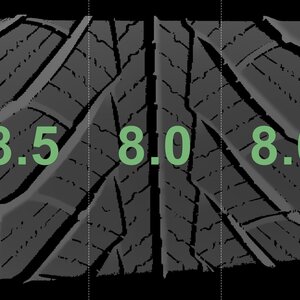 The measured tread depths and details of the rims are shown above.