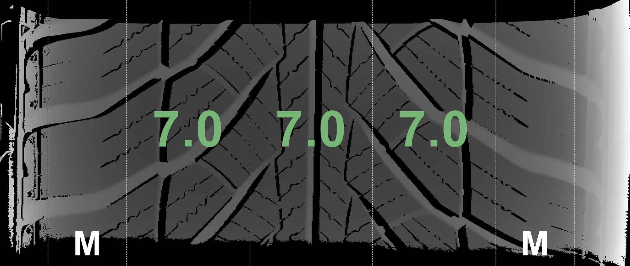 | Condition | Profile depth | DOT | Rear Right | Used | 7.0 mm | 1020 |