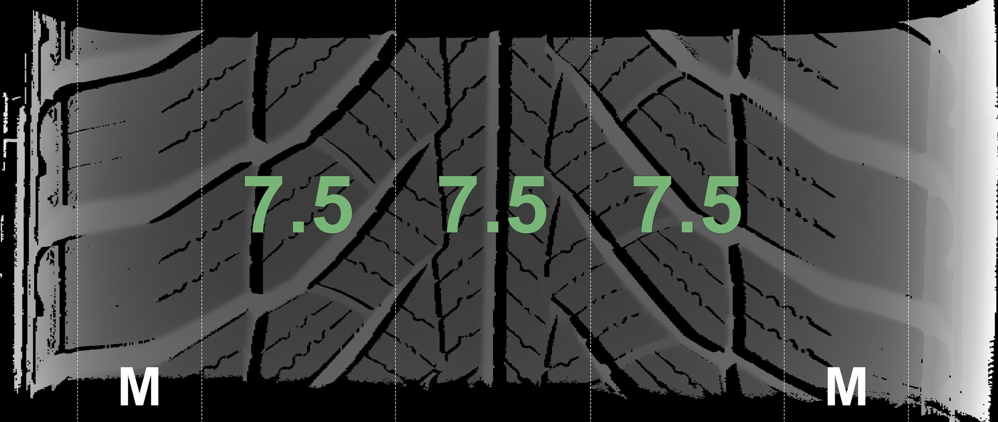 | Condition | Profile depth | DOT | Front Right | Used | 7.5 mm | 1020 |