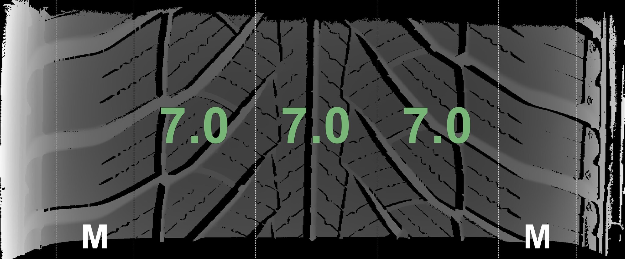 | Condition | Profile depth | DOT | Front Left | Used | 7.0 mm | 1020 |