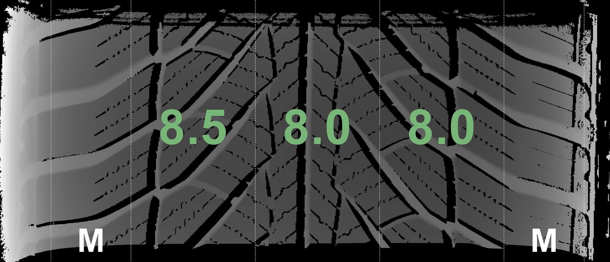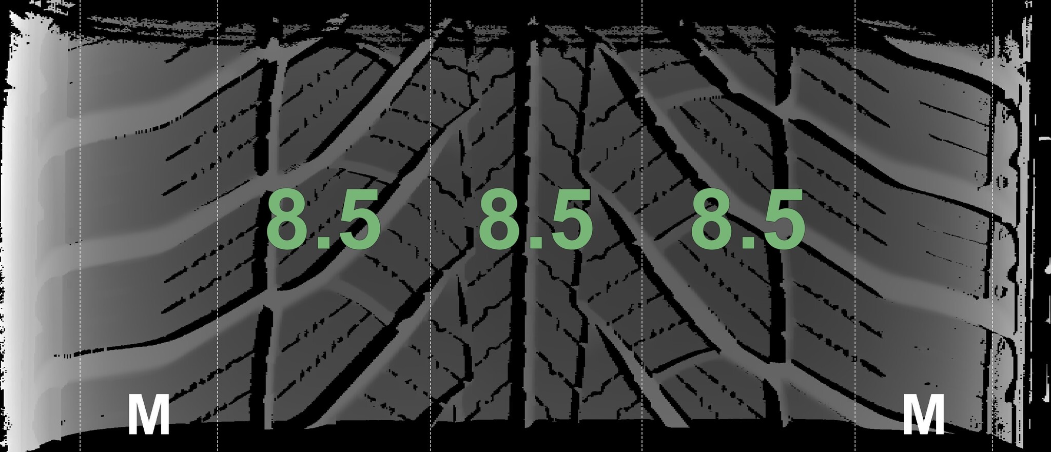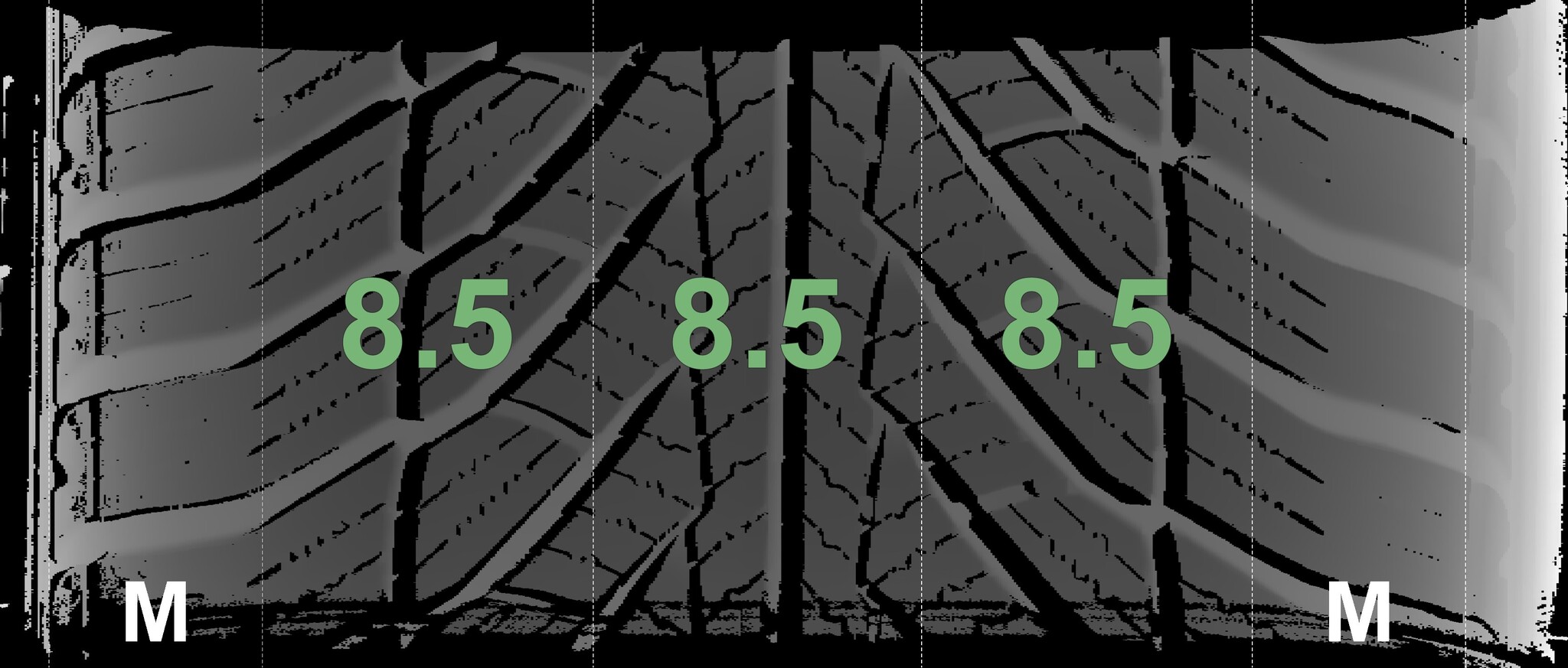 | Condition | Profile depth | DOT | Rear Left | Used | 8.5 mm | 4622 |