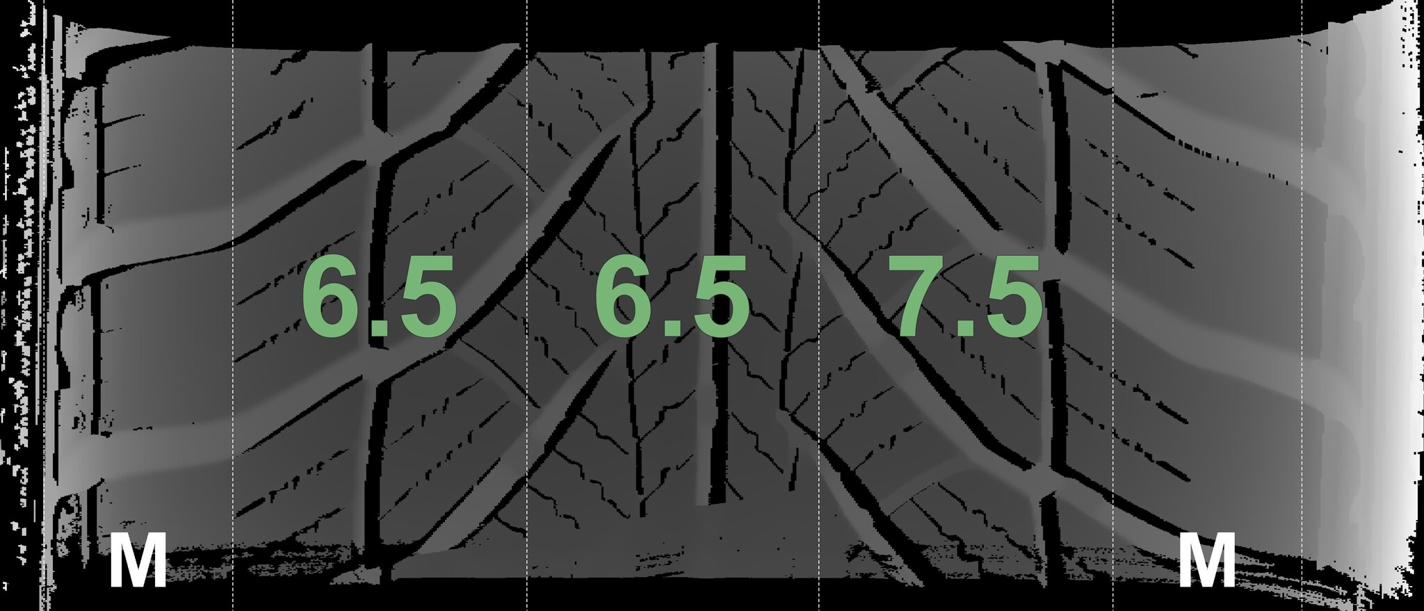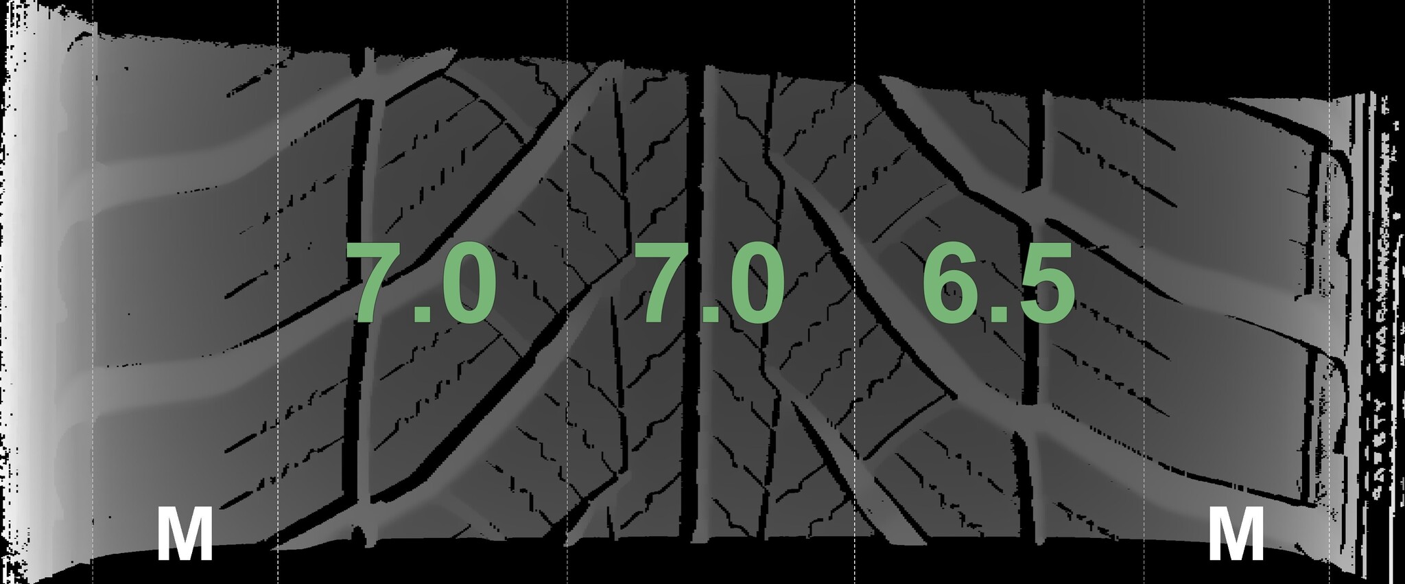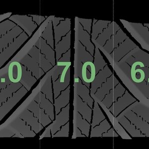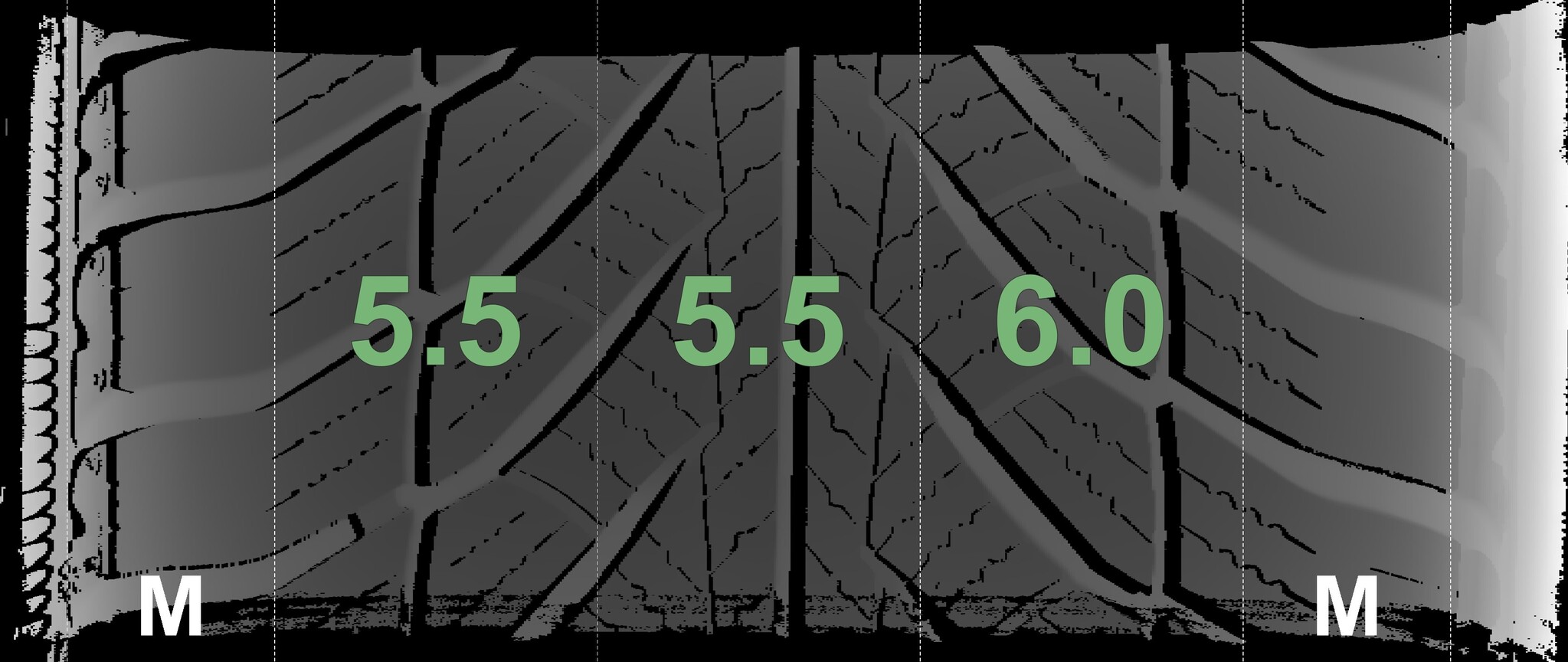 The measured tread depths and the details of the rims are shown above.