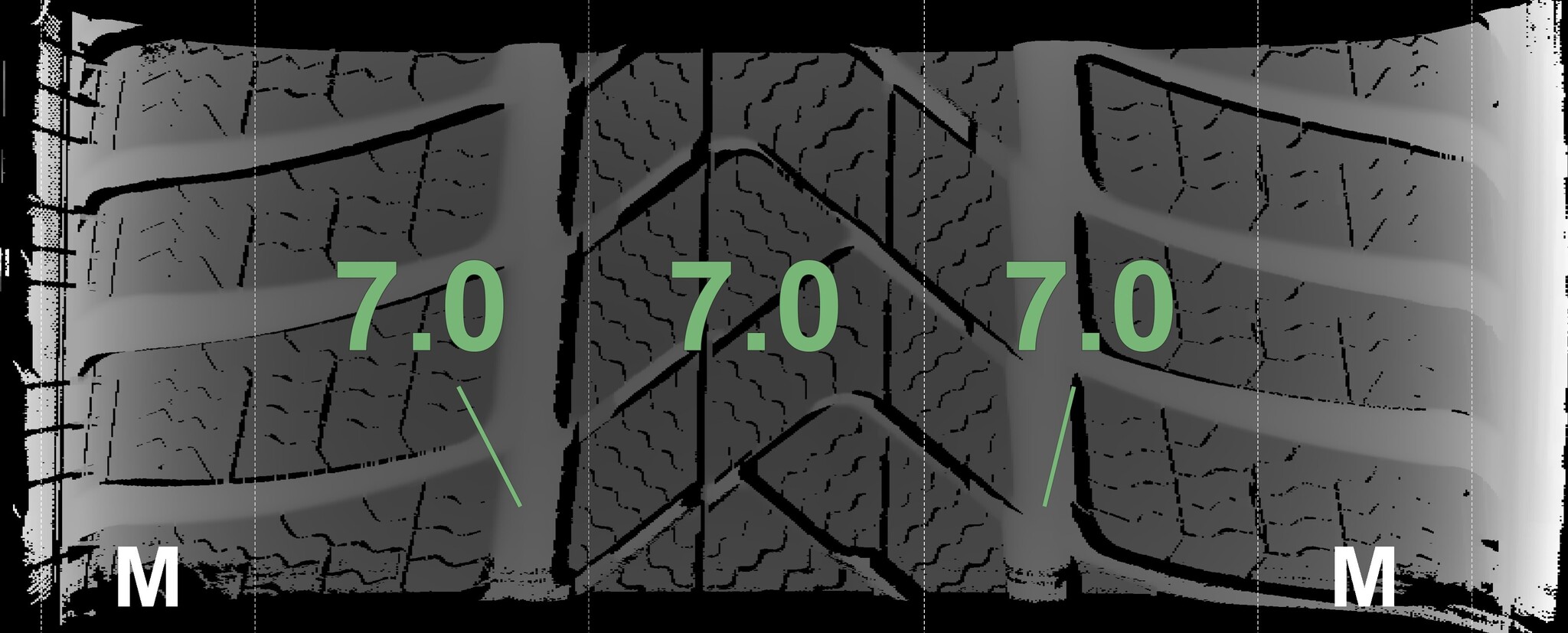 | Condition | Profile depth | DOT | Front Left | Demo dots still visible | 7.3 mm | 0718 |
