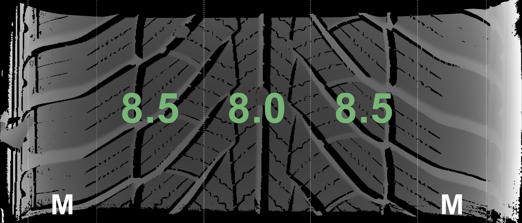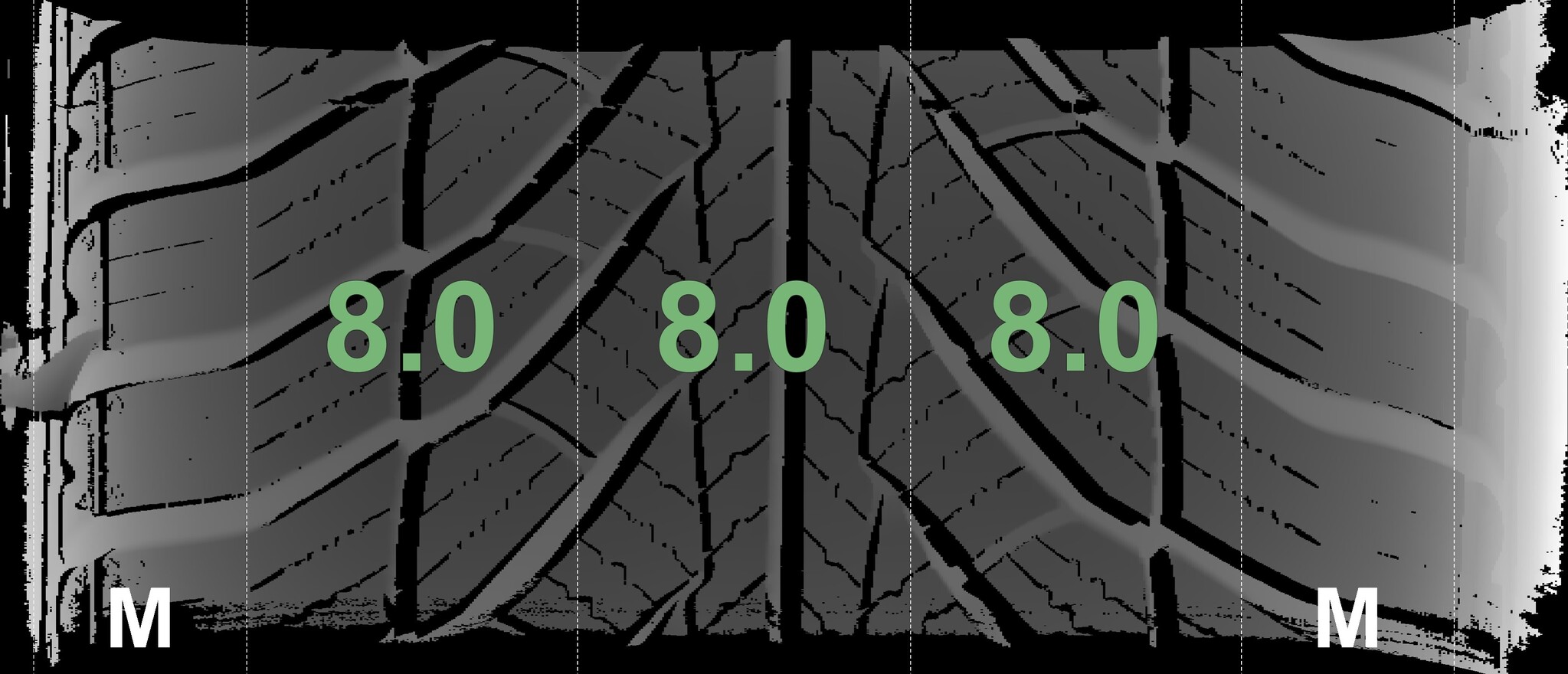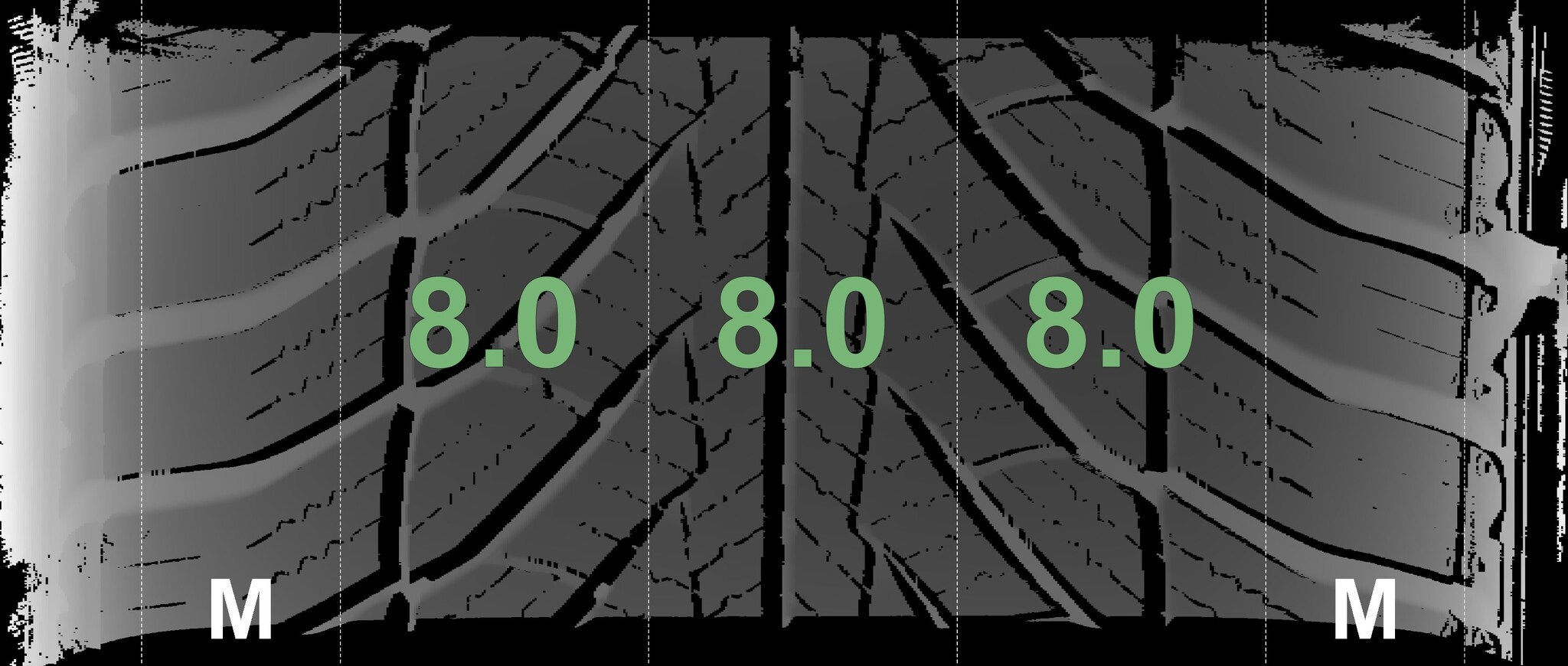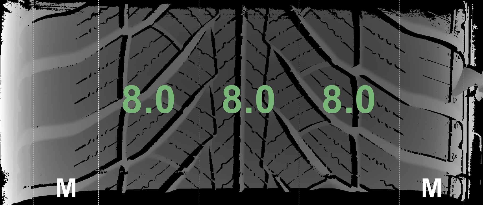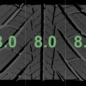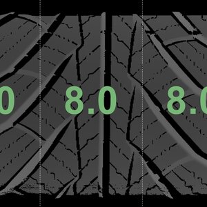 The measured tread depths and the details of the rims are shown above.