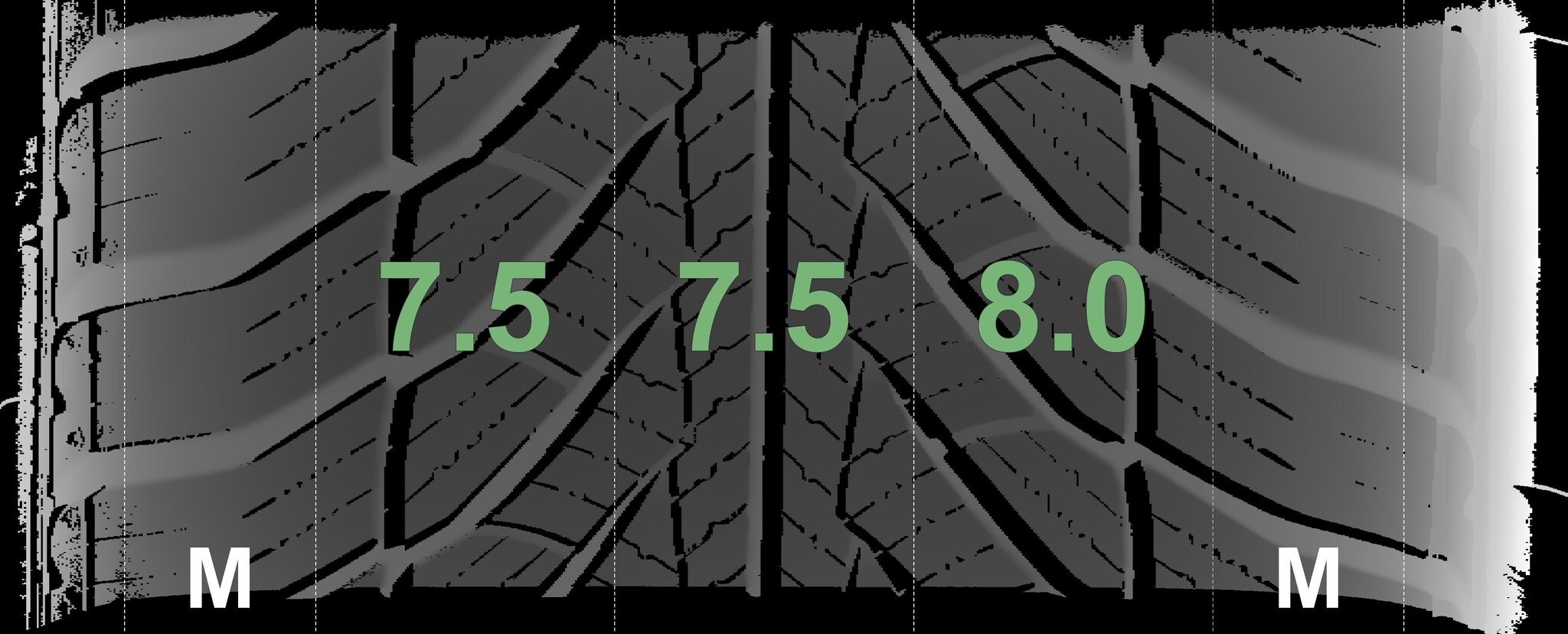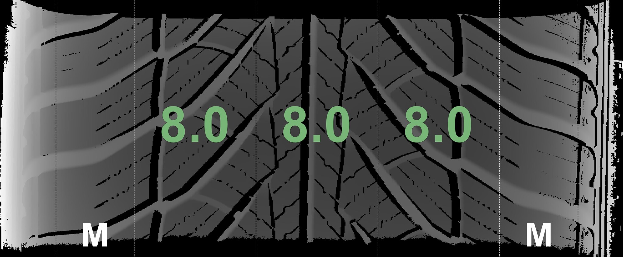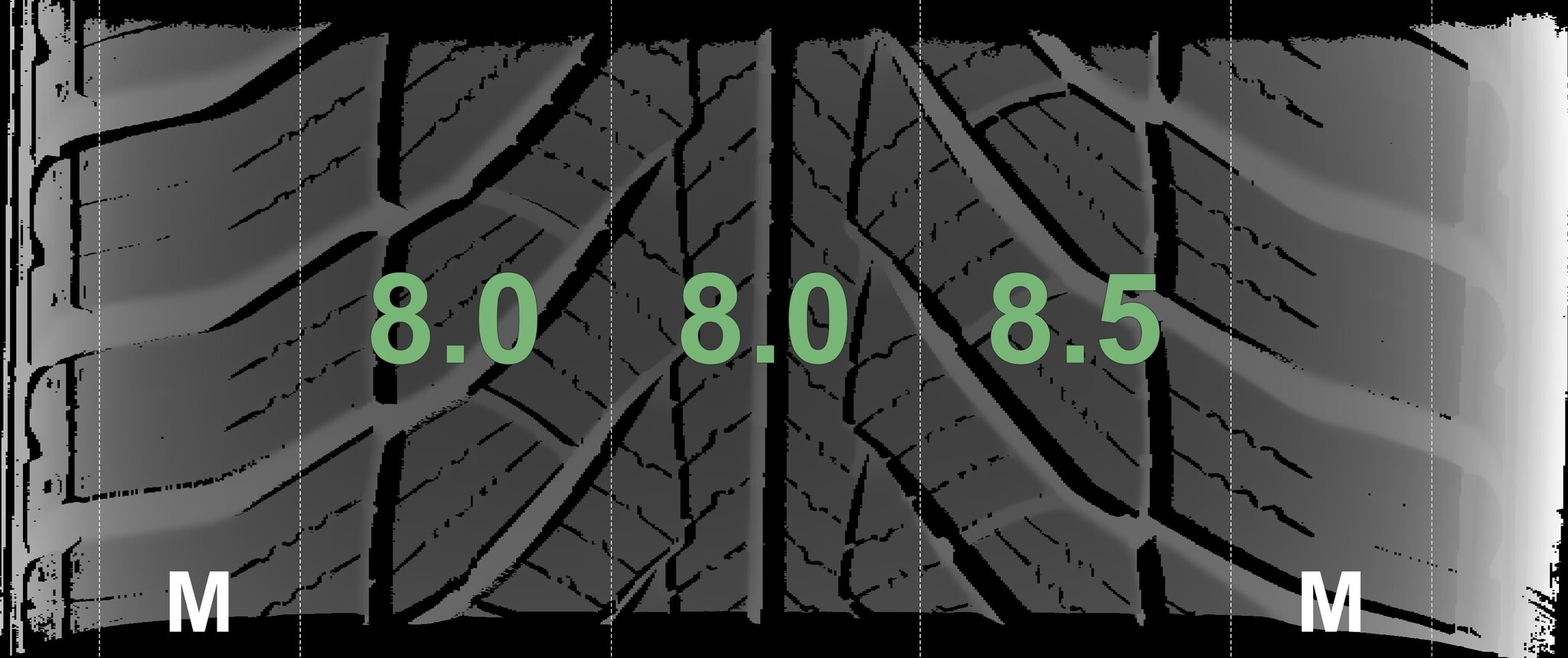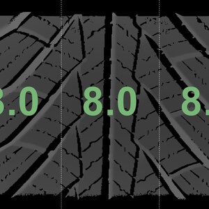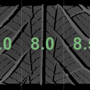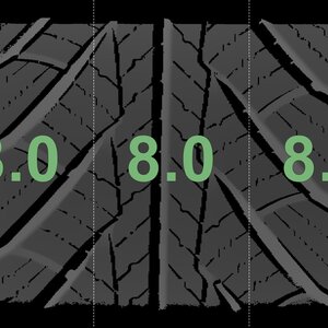 The measured tread depths and the details of the rims are shown above.