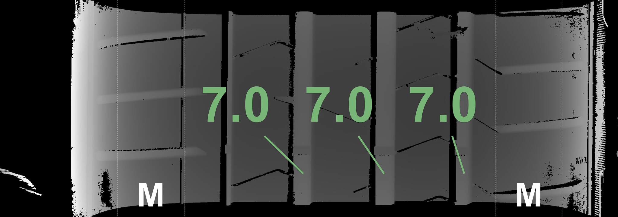 | Condition | Profile depth | DOT | Front Left | Used | 6.5 mm | 3523 |