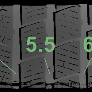 The measured tread depths and the details of the rims are shown above.