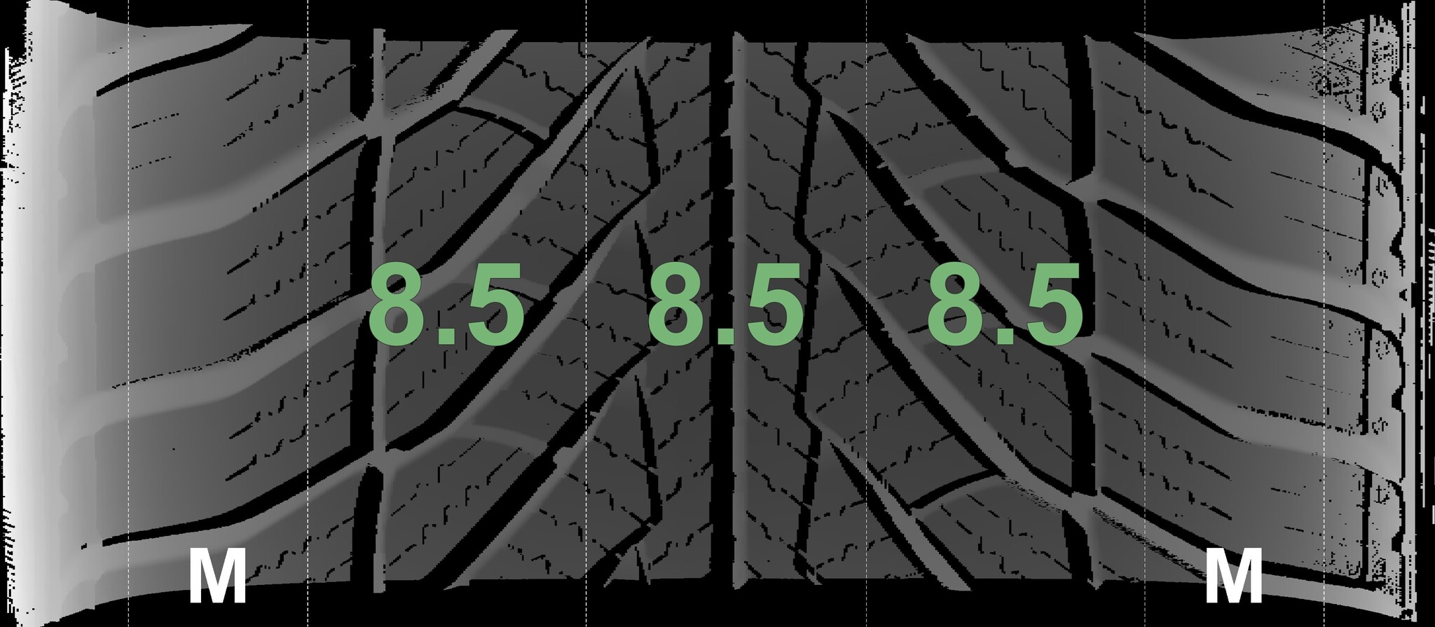 Condition | Profile depth | DOT | Rear Left | New | 8.5 mm | 4122 |