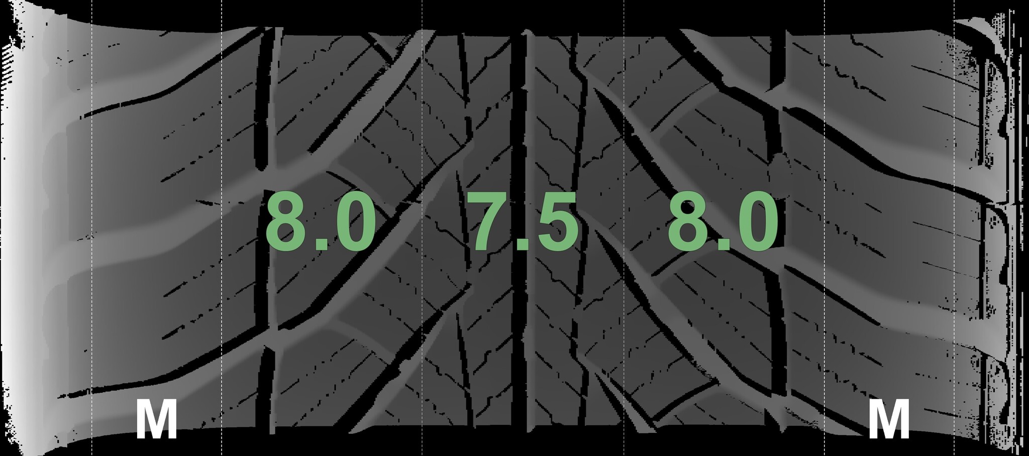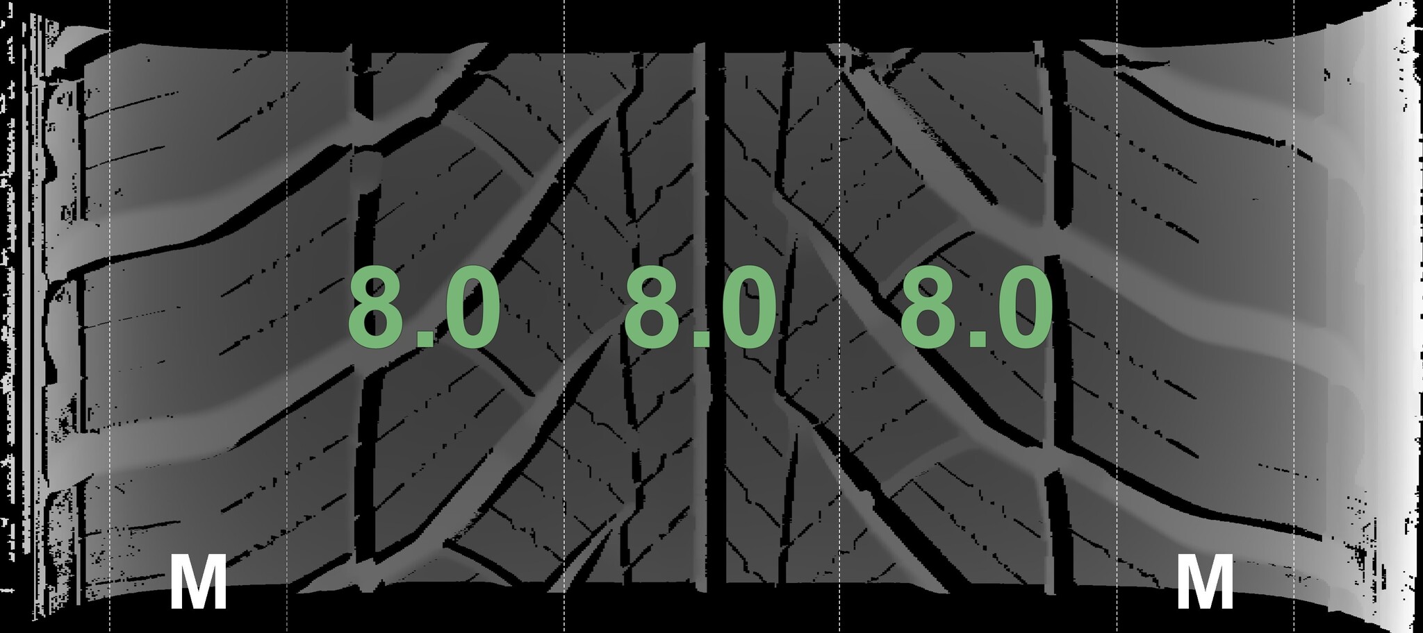 Condition | Profile depth | DOT | Front Right | Used | 8.0 mm | 2323 |