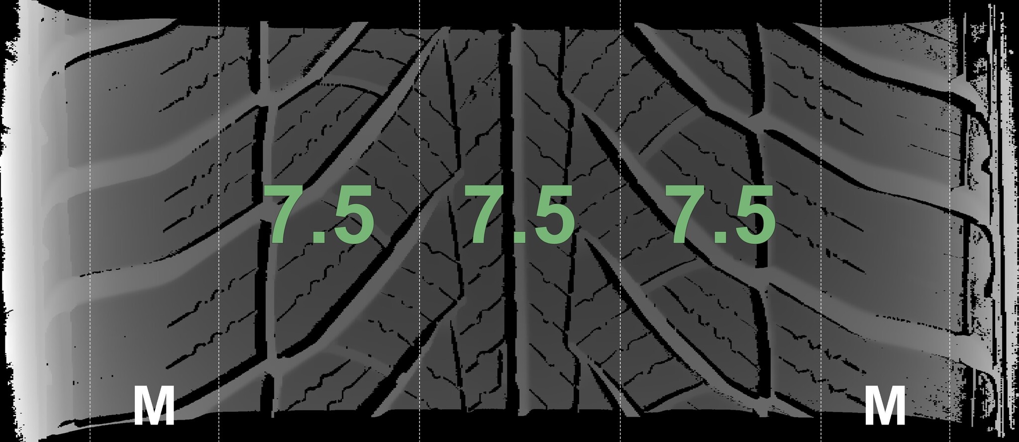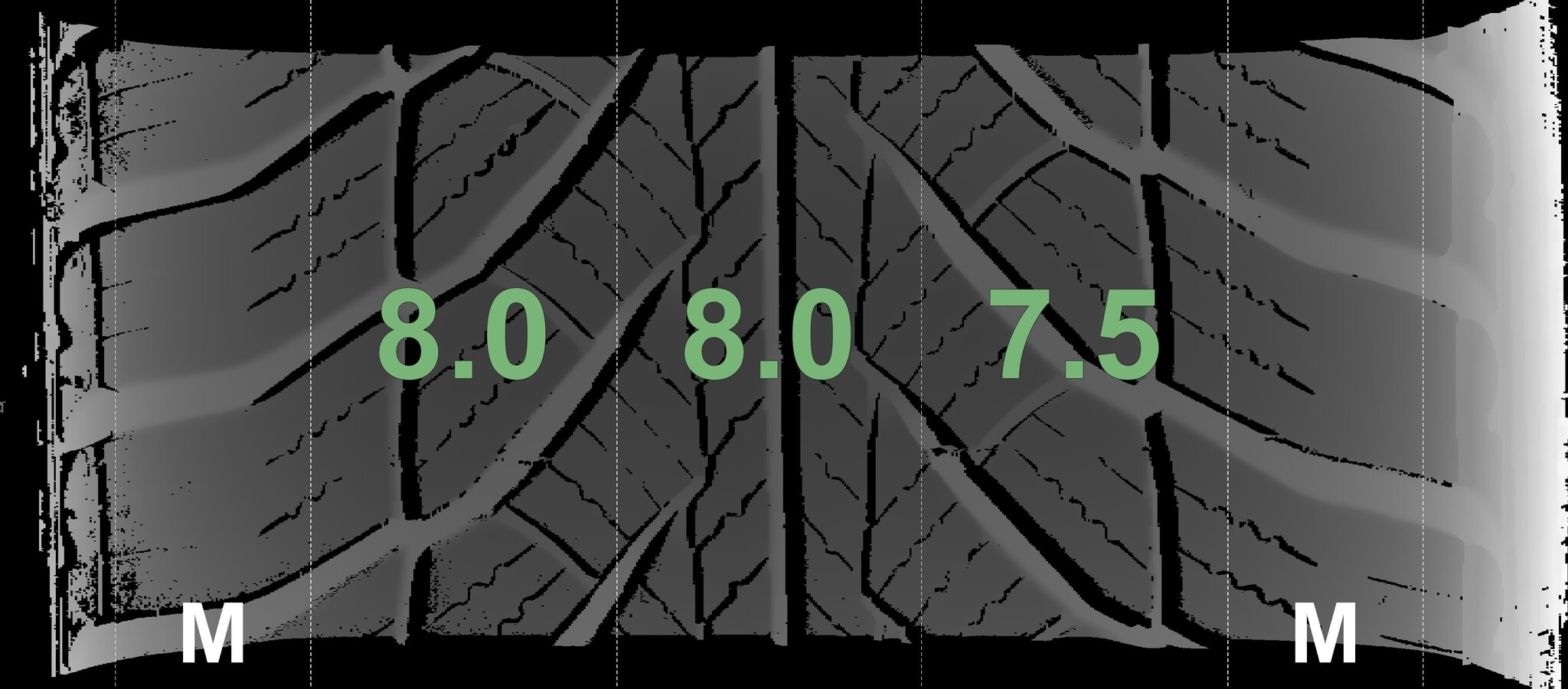 | Condition | Profile depth | DOT | Rear Left | Used | 7.5 mm | 3820 |