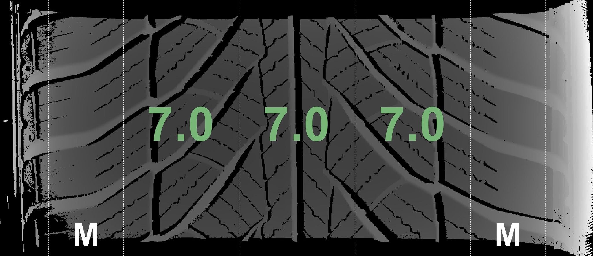 | Condition | Profile depth | DOT | Front Right | Used | 7.0 mm | 2019 |