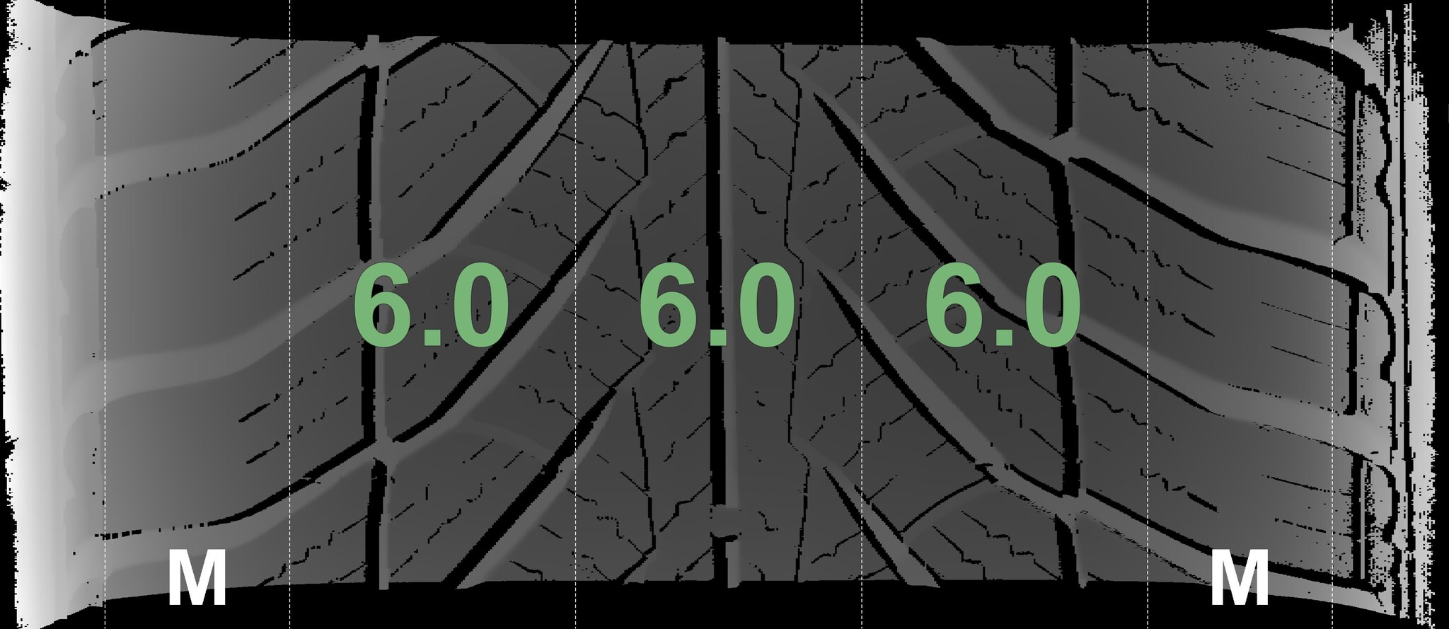 | Condition | Profile depth | DOT | Front Left | Used | 6.0 mm | 2019 |