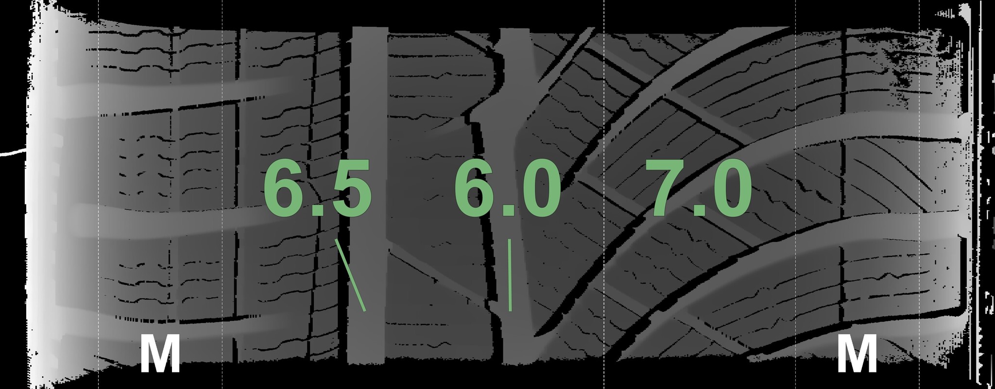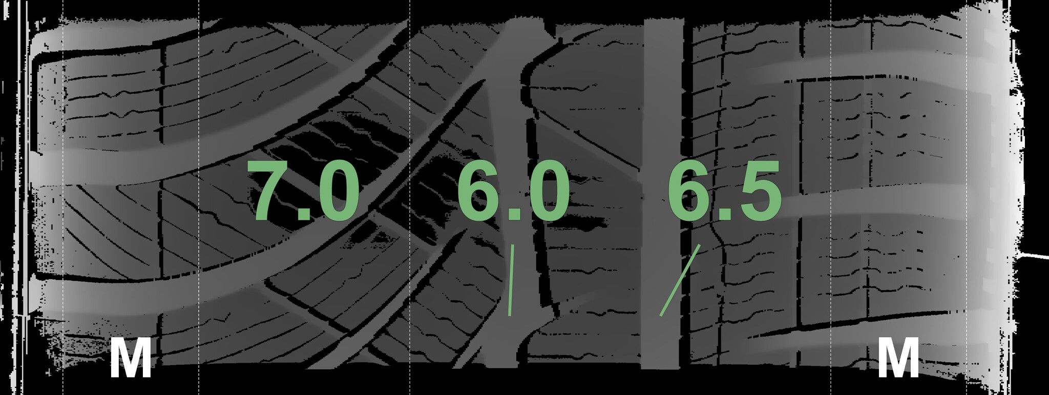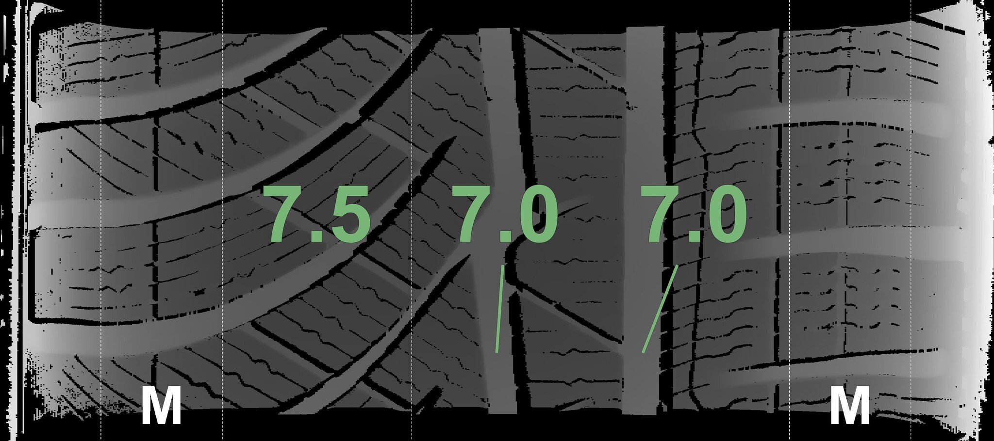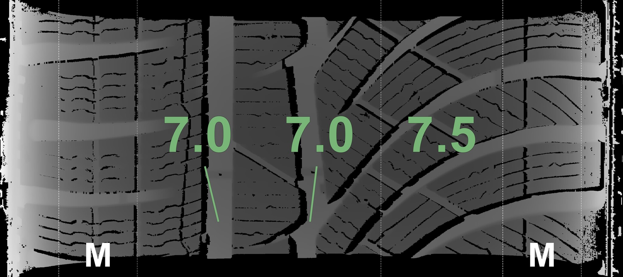 The measured tread depths and details of the rims are shown above.