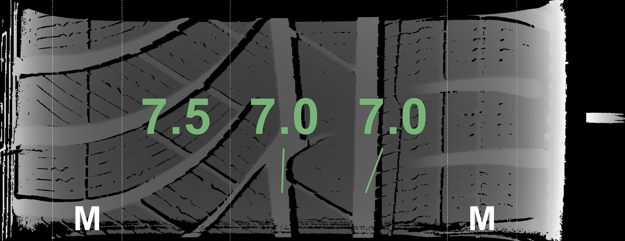 | Condition | Profile depth | DOT | Front Left | Used | 6.0 mm | 2425 |