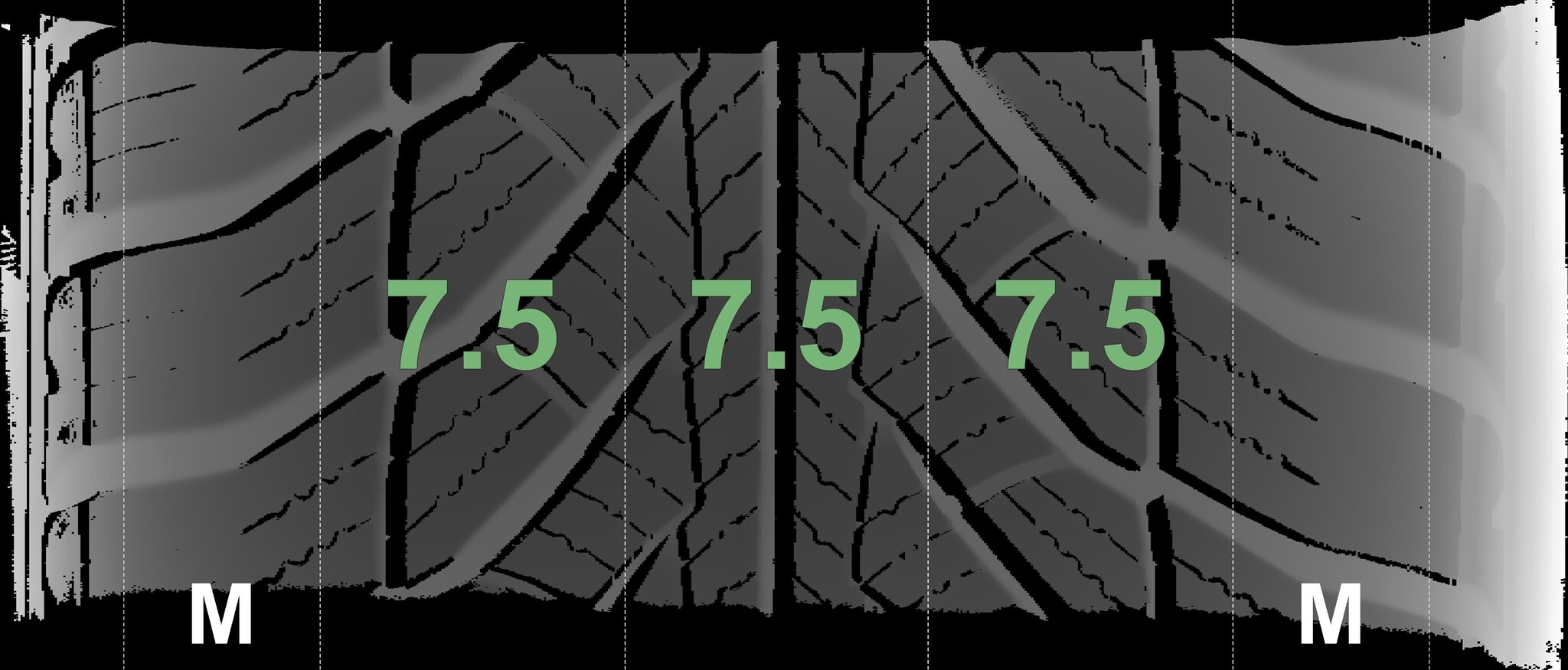 | Condition | Profile depth | DOT | Rear Right | Used | 7.5 mm | 2519 |