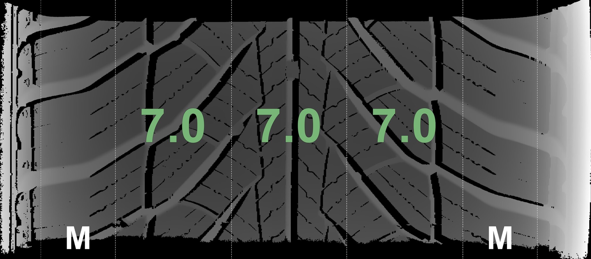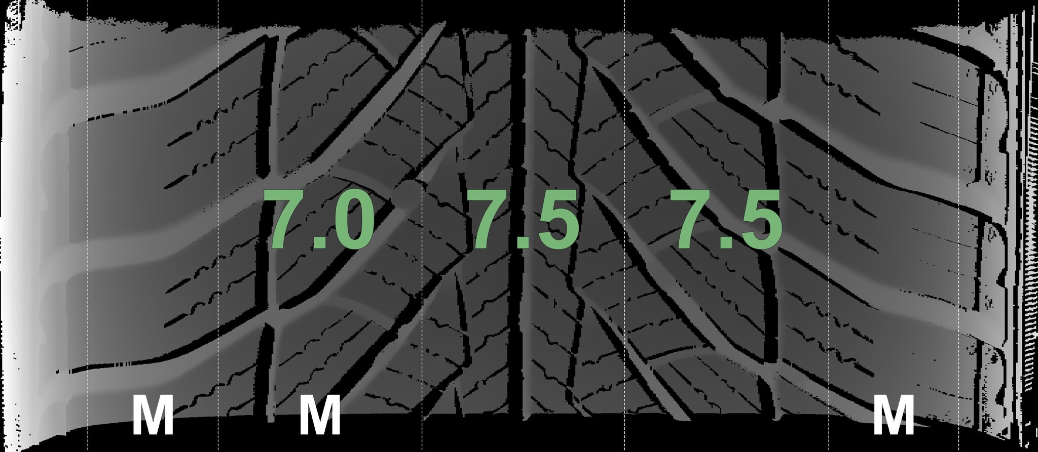 | Condition | Profile depth | DOT | Front Left | Used | 7.3 mm | 2519 |