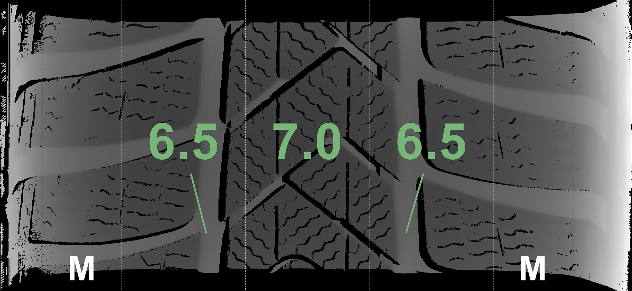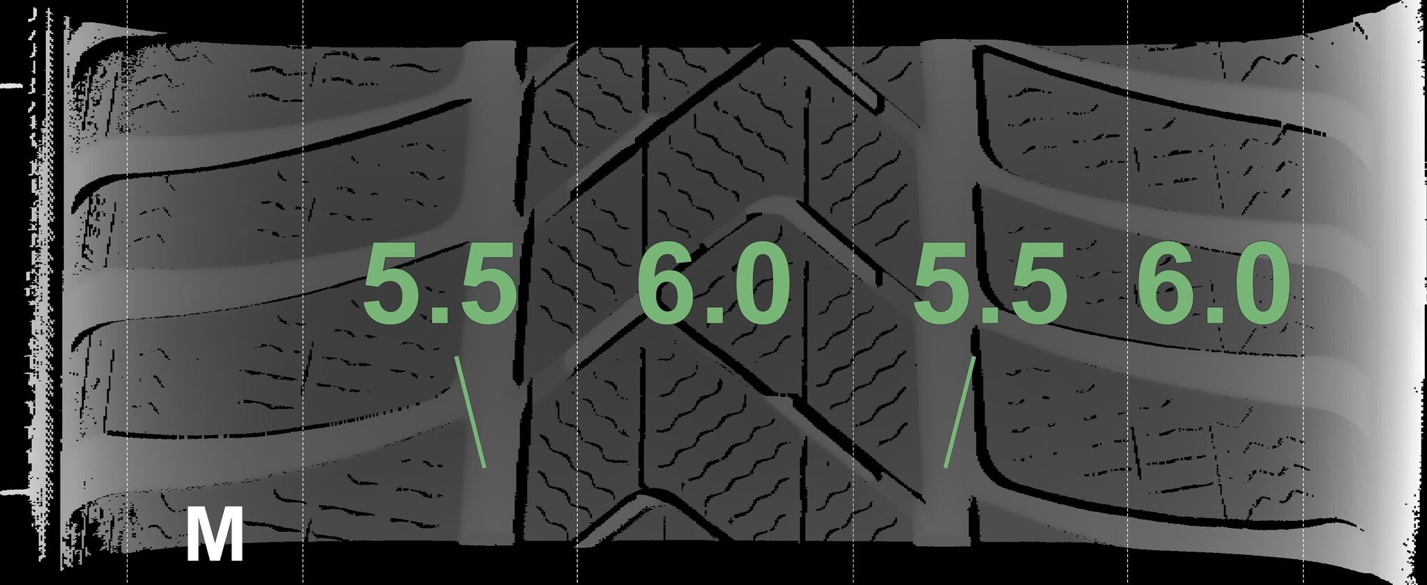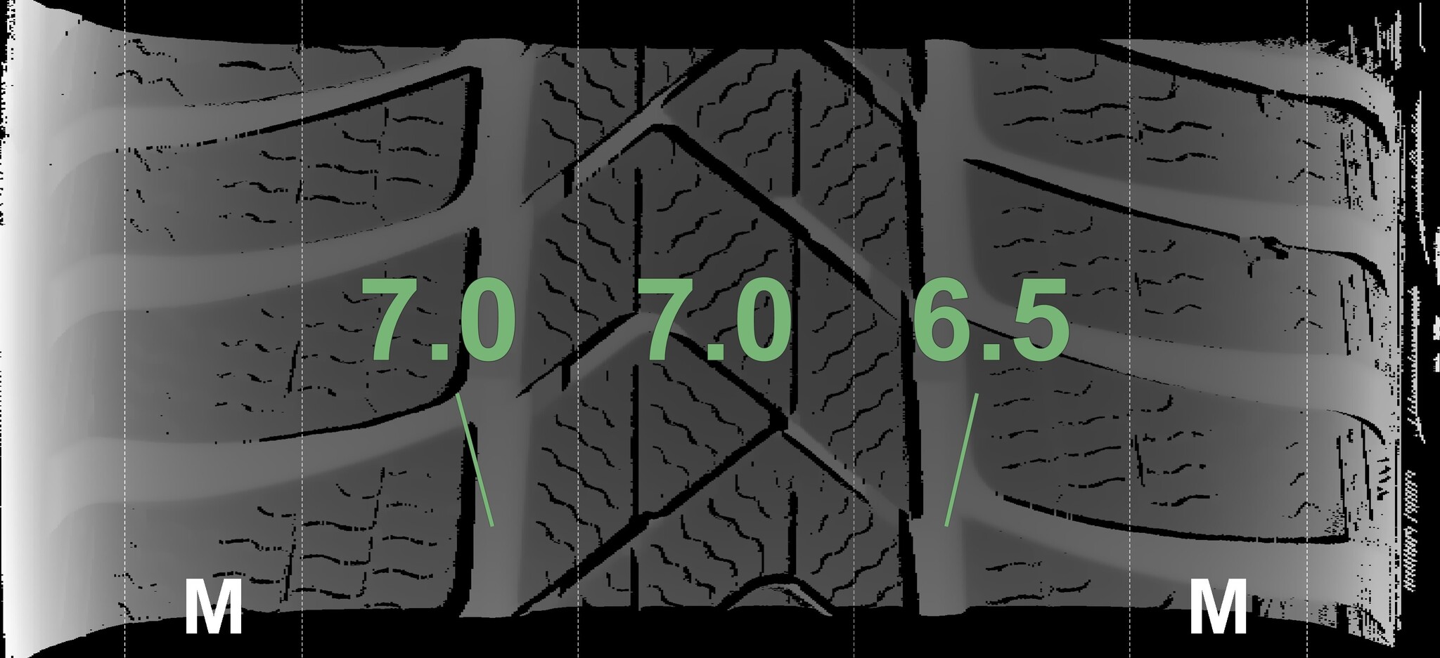 The measured tread depths and details of the rims are shown above.