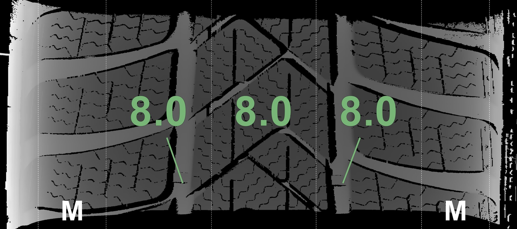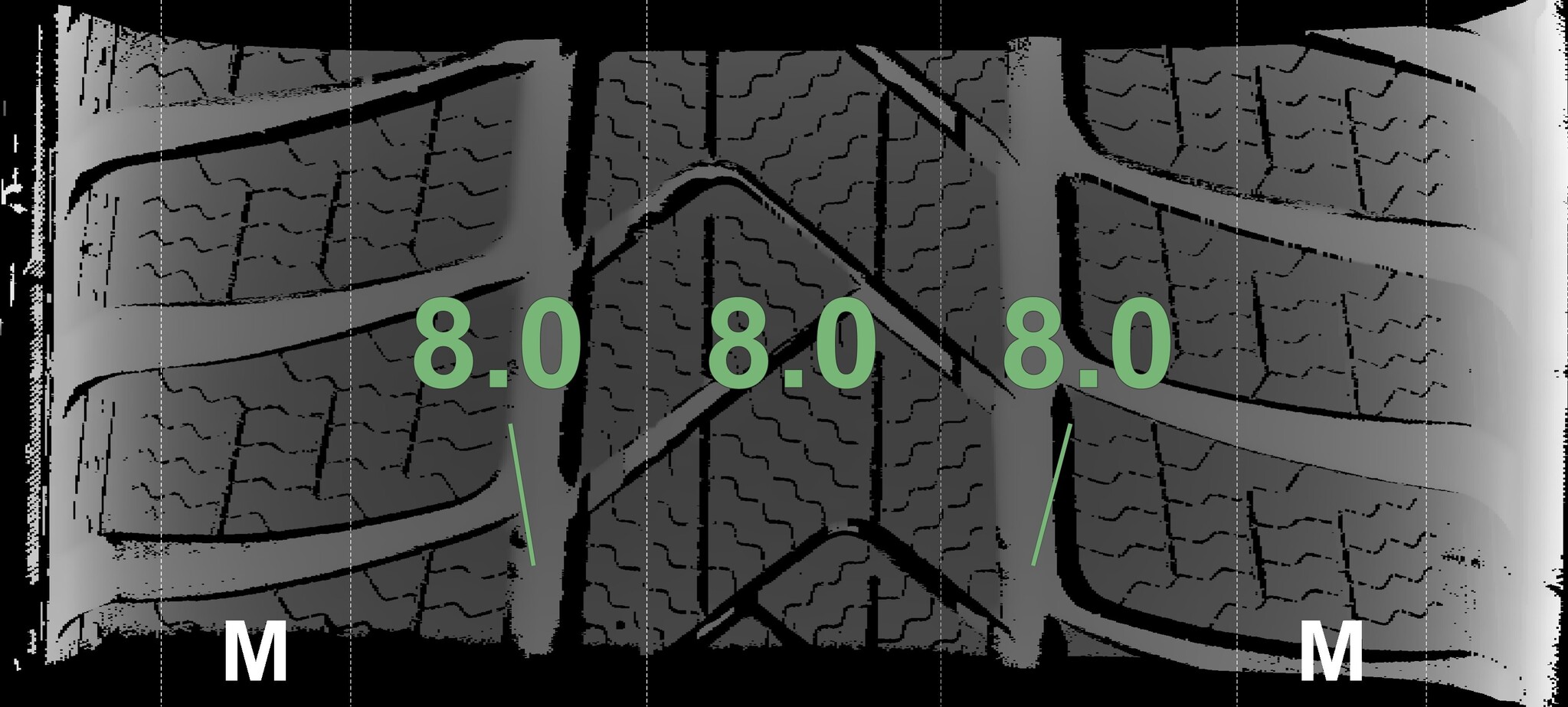 | Condition | Profile depth | DOT | Front Right | New | 8.0 mm | 3623 |