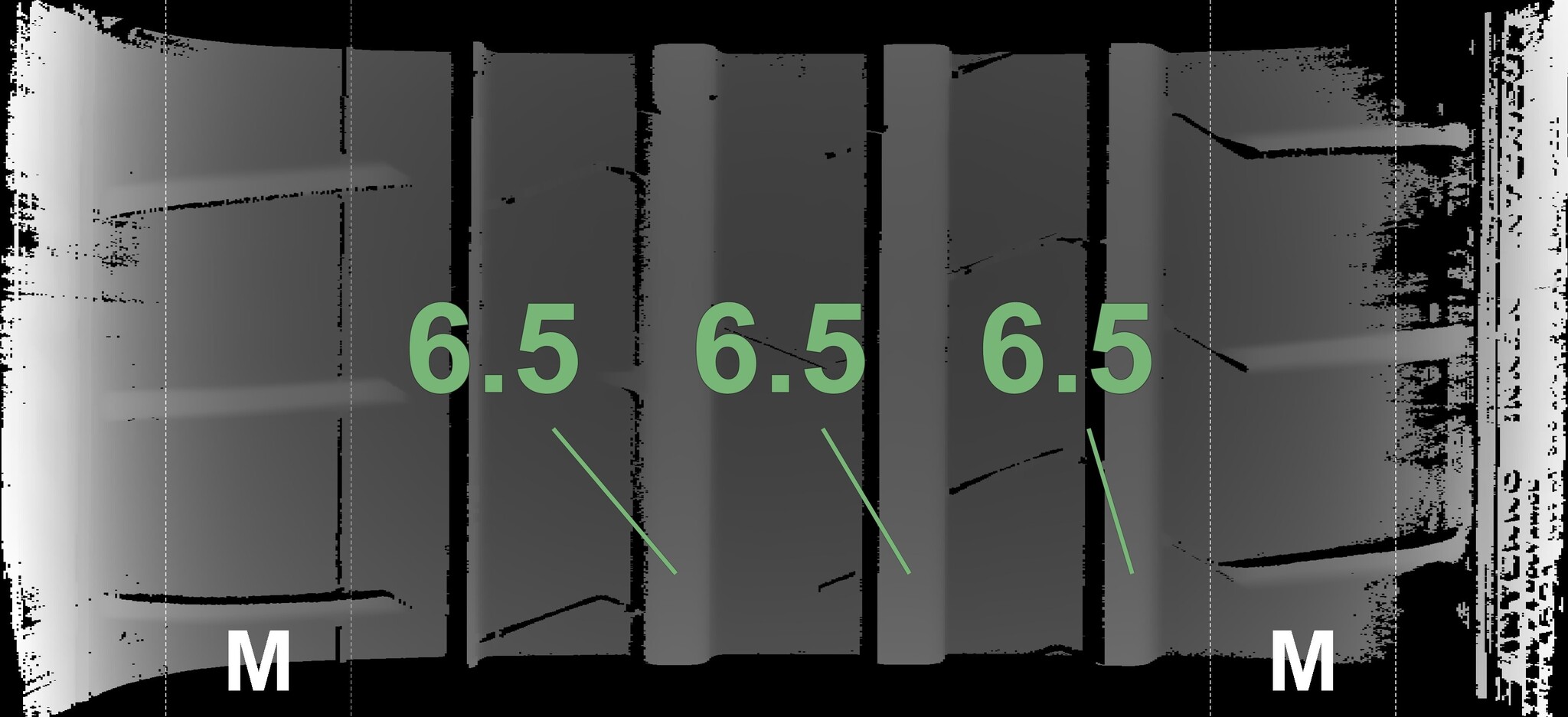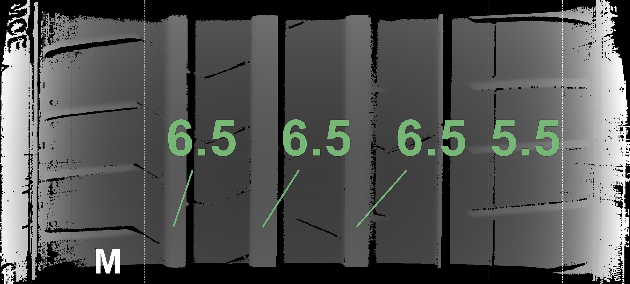 Condition | Profile depth | DOT | Front Right | Used | 6.5 mm | 0224 |