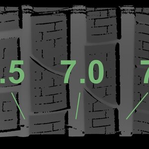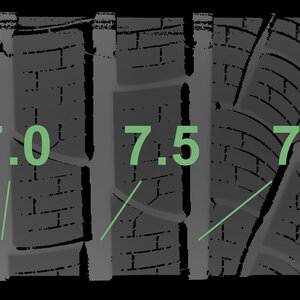 The measured tread depths and the details of the rims are shown above.