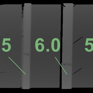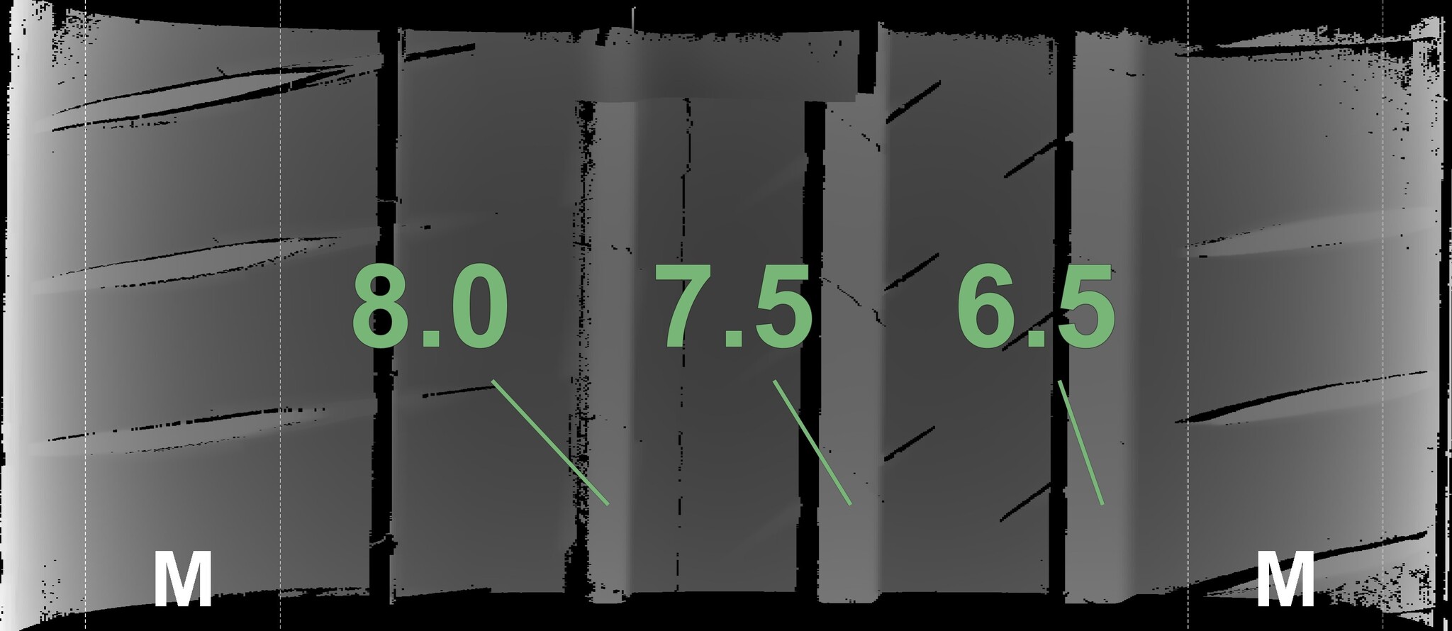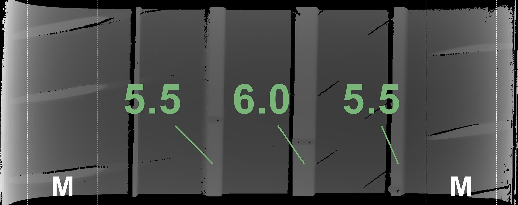 The measured tread depths and the details of the rims are shown above.