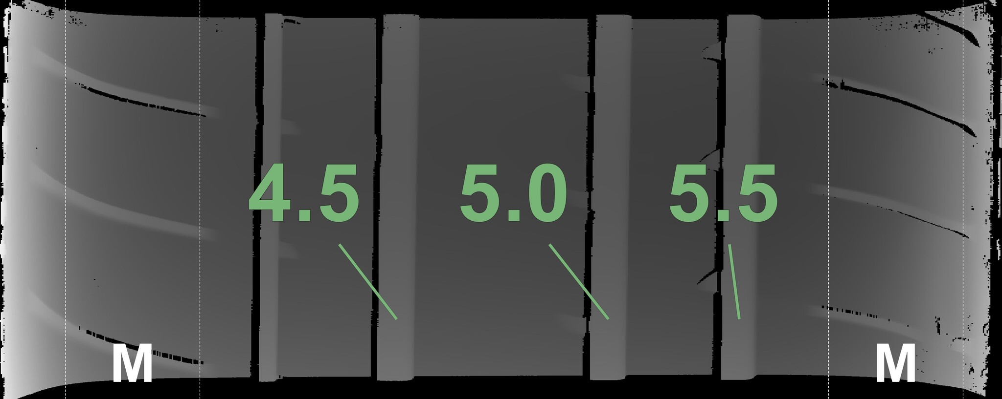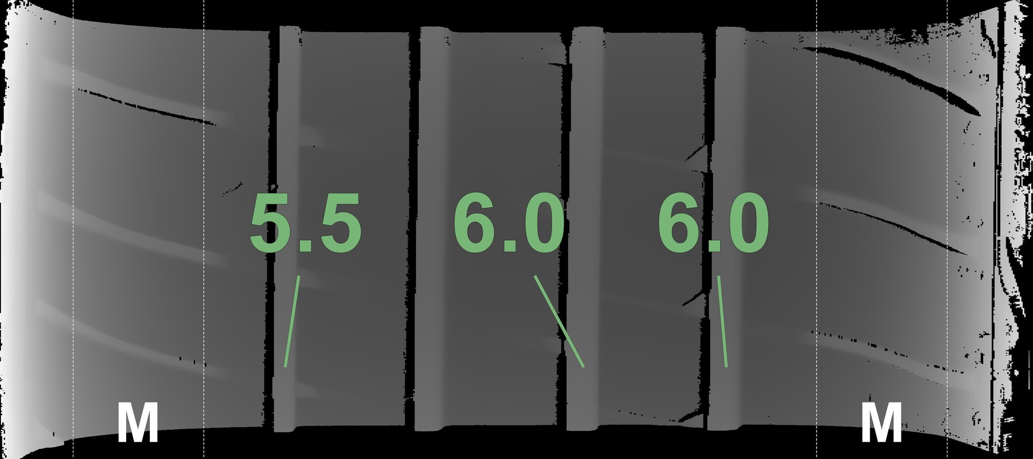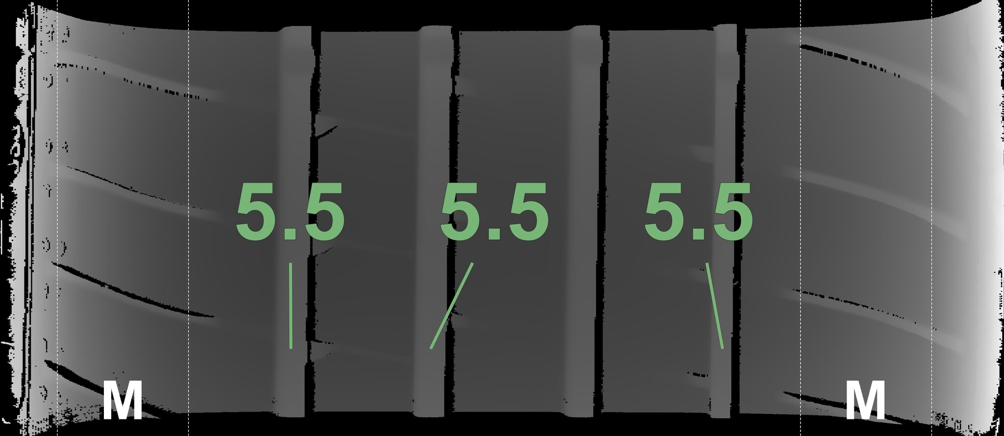 The measured tread depths and the details of the rims are shown above.
