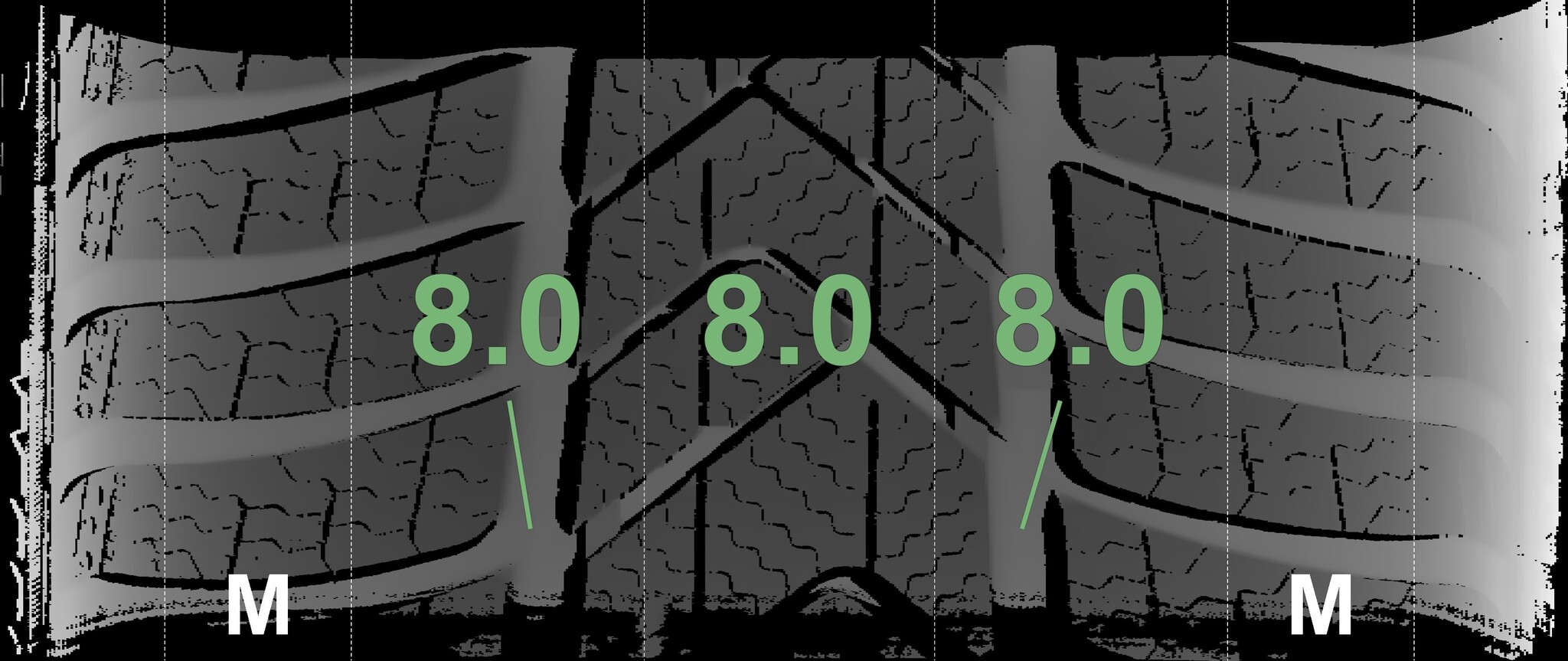 | Condition | Profile depth | DOT | Front Right | New | 8.0 mm | 3525 |