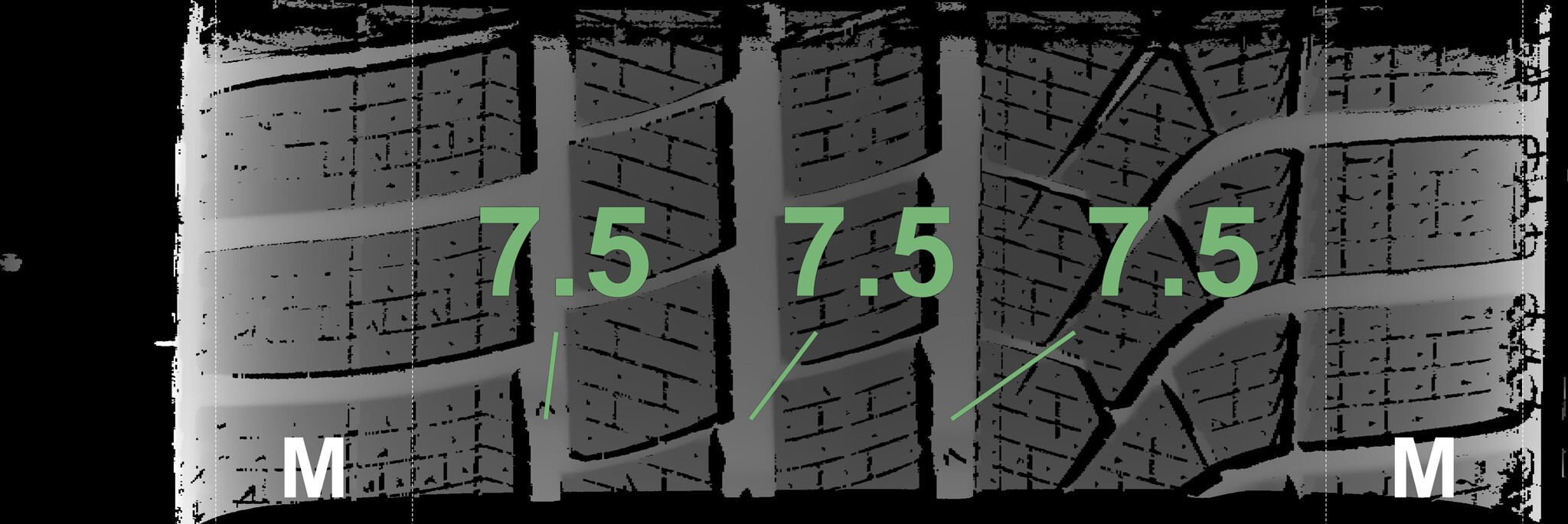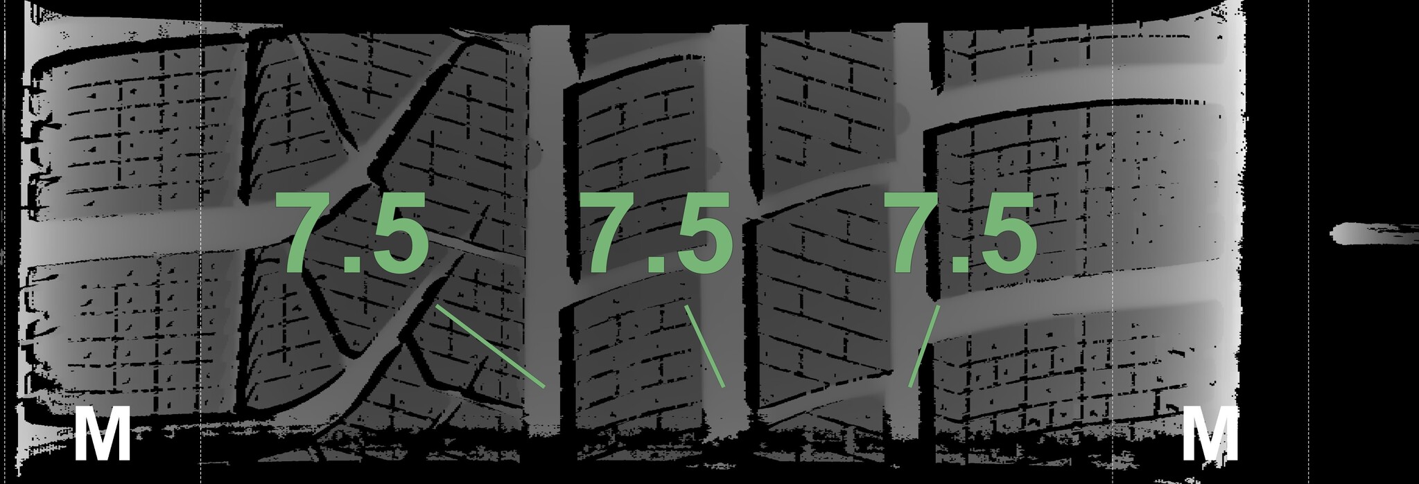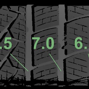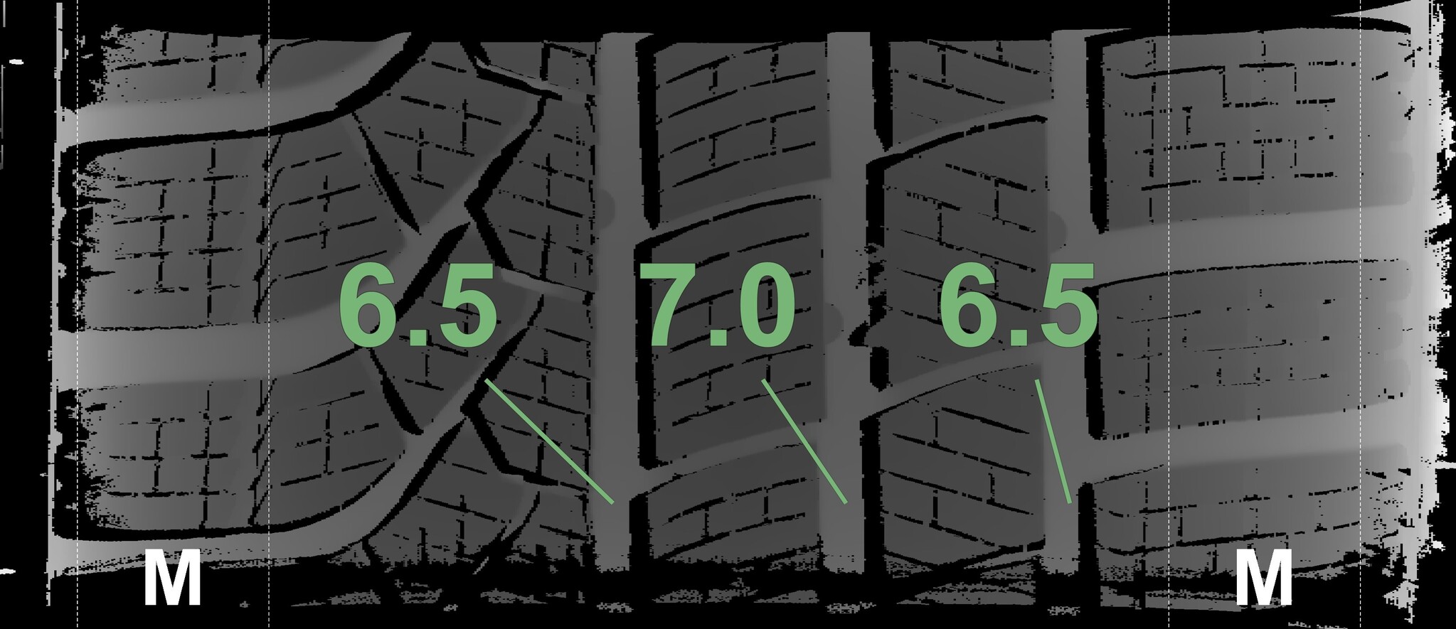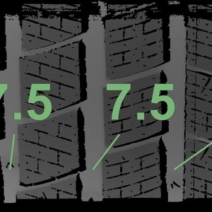 The measured tread depths and the details of the rims are shown above.