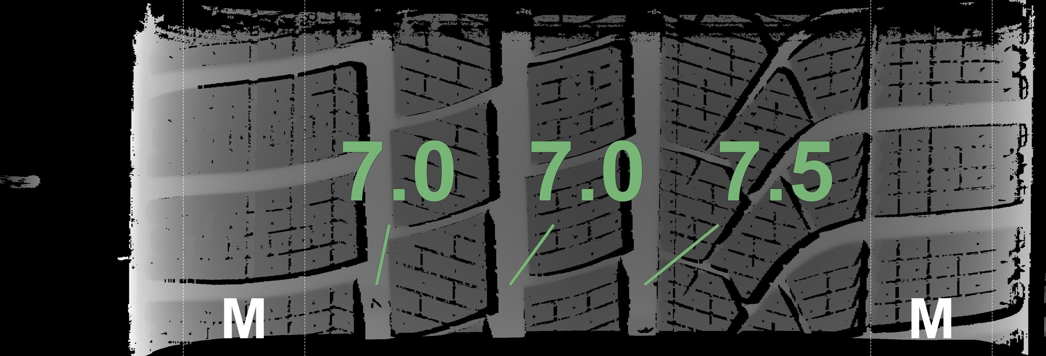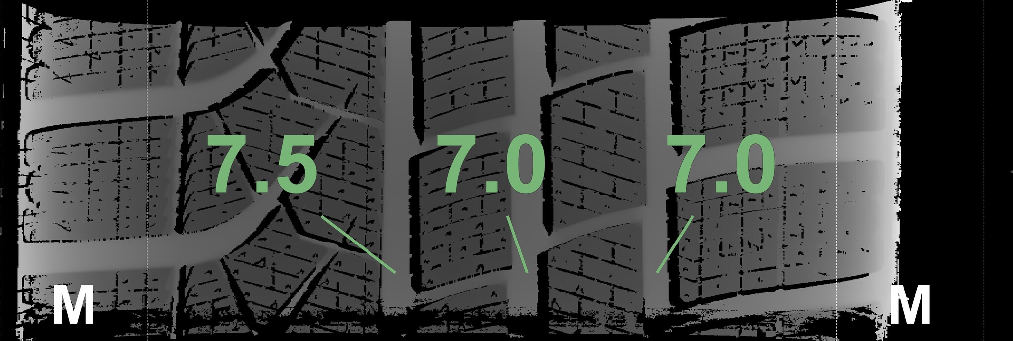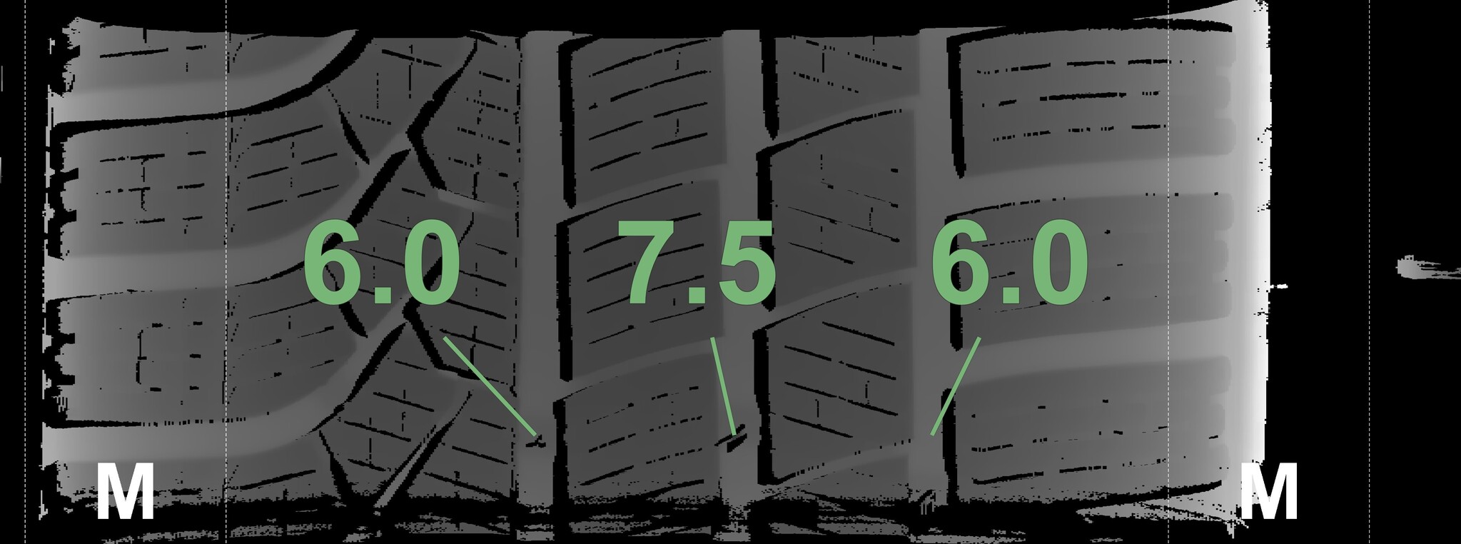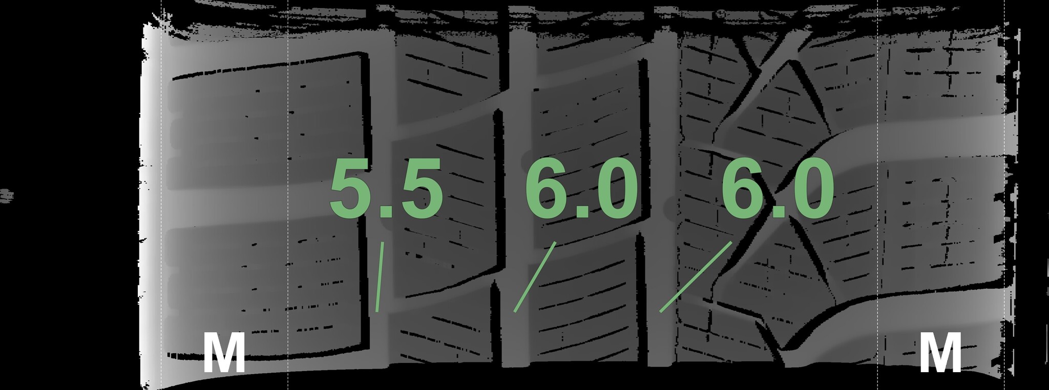 The measured tread depths and the details of the rims are shown above.