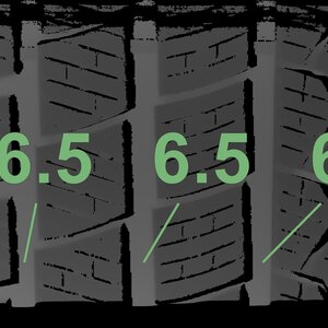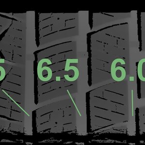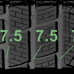 The measured tread depths and the details of the rims are shown above.