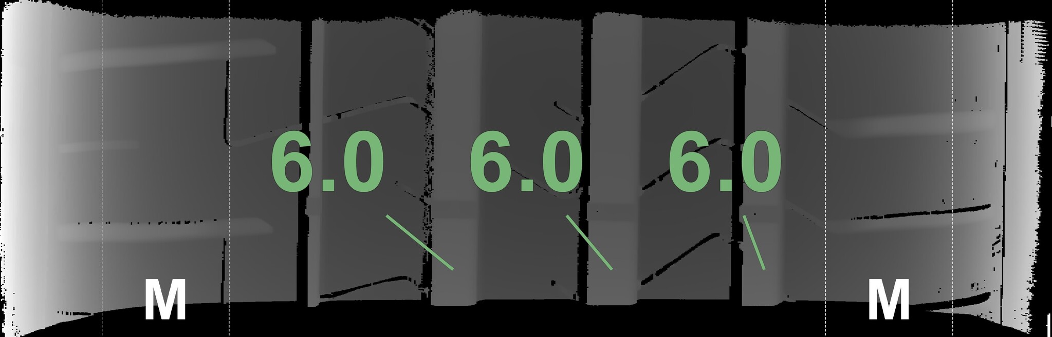 | Condition | Profile depth | DOT | Front Left | Demo studs still visible | 6.0 mm | 3825 |