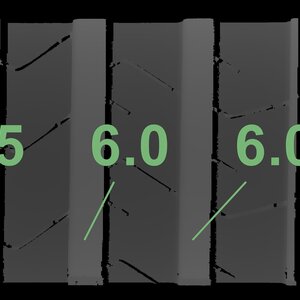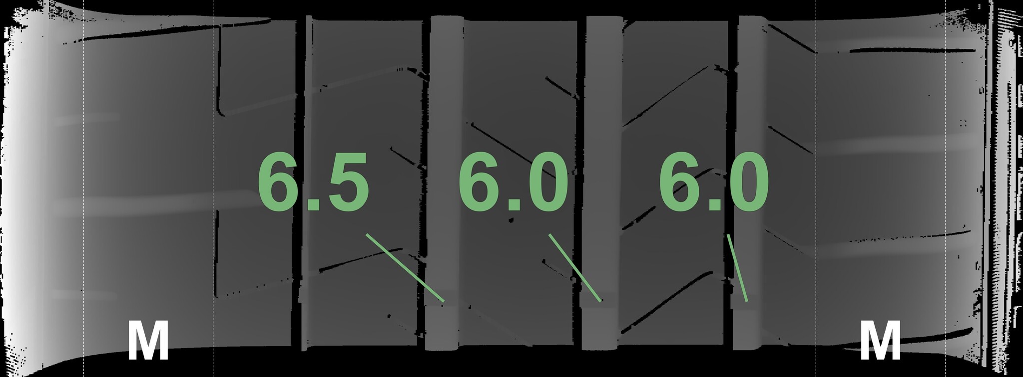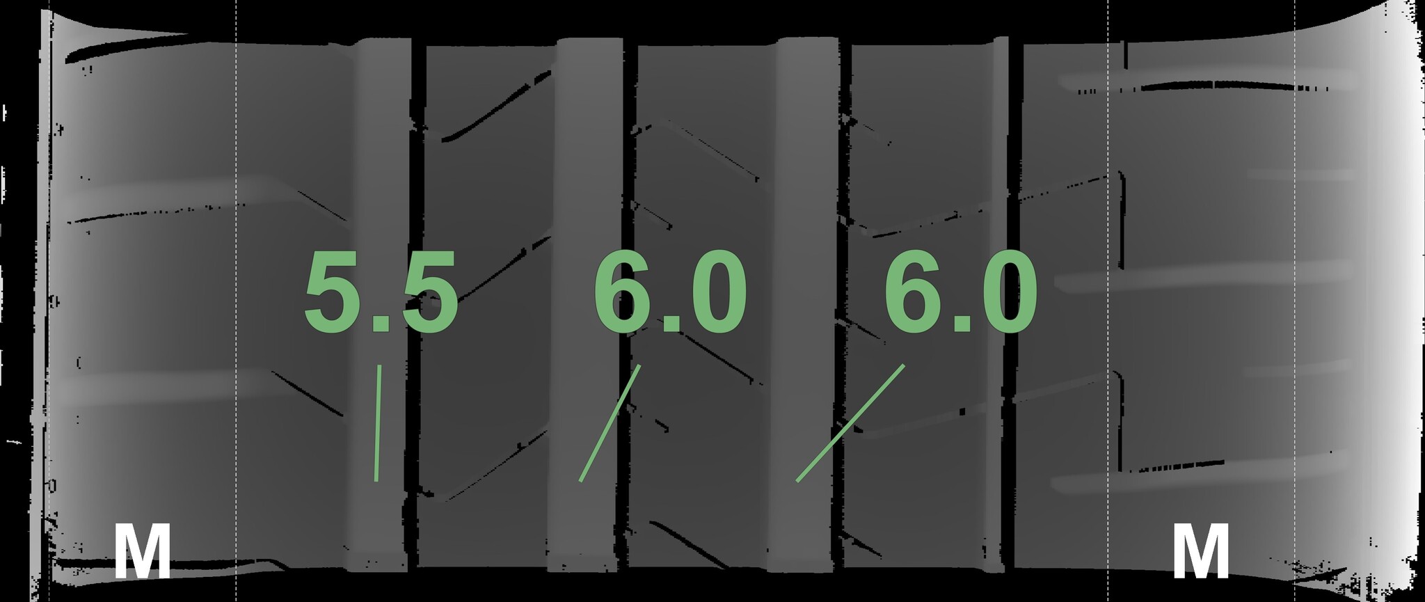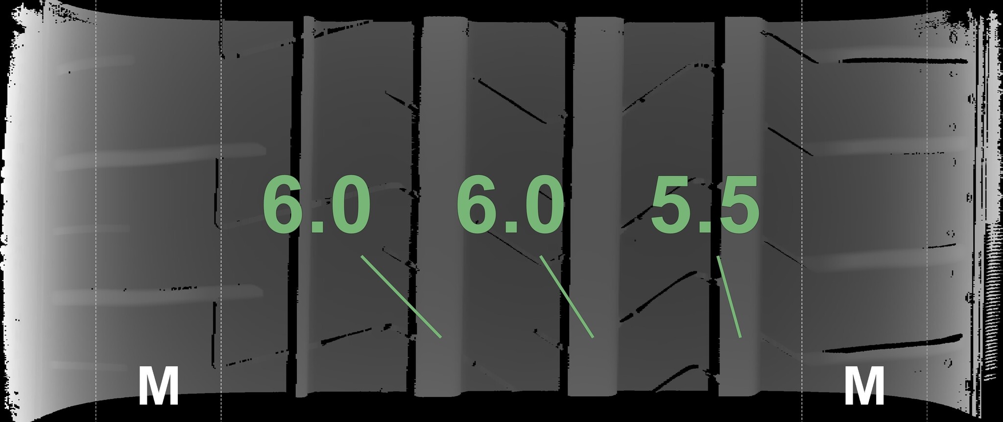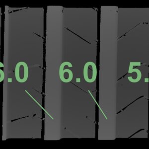 The measured tread depths and the details of the rims are shown above.