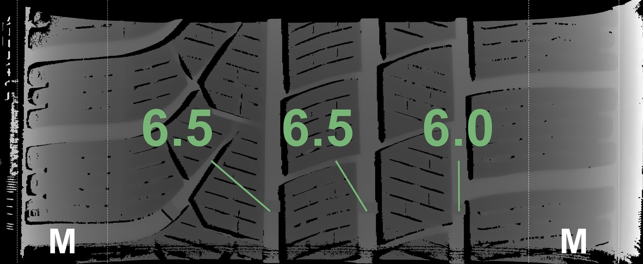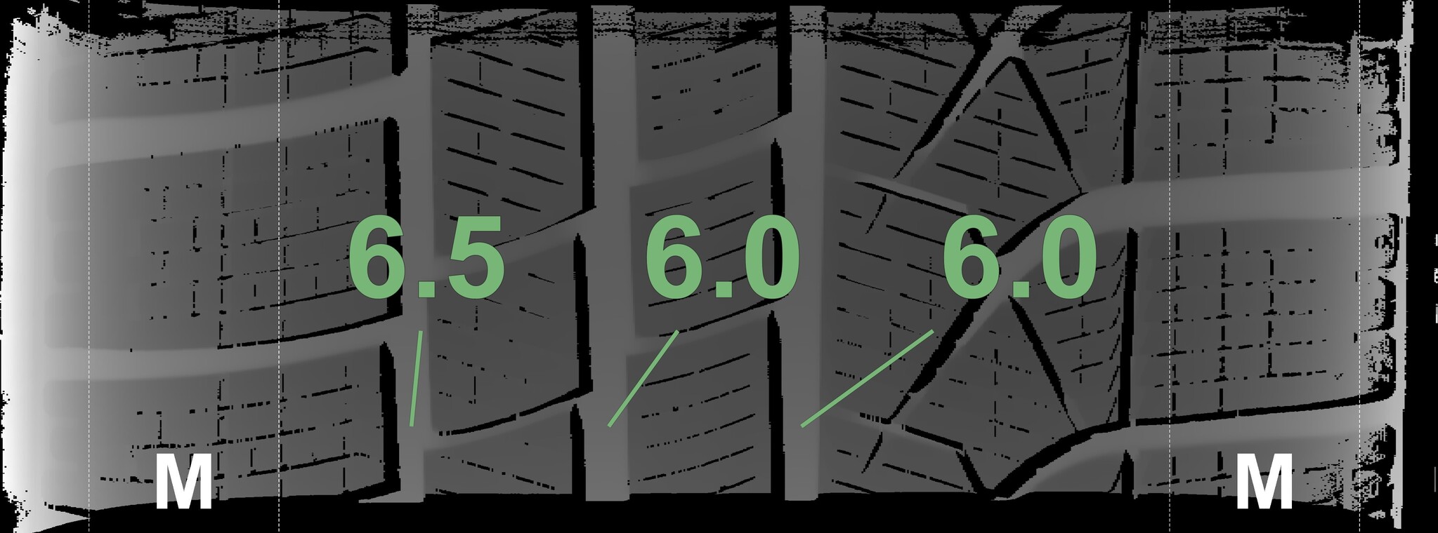 | Condition | Profile depth | DOT | Front Right | Used | 6.0 mm | 3724 |