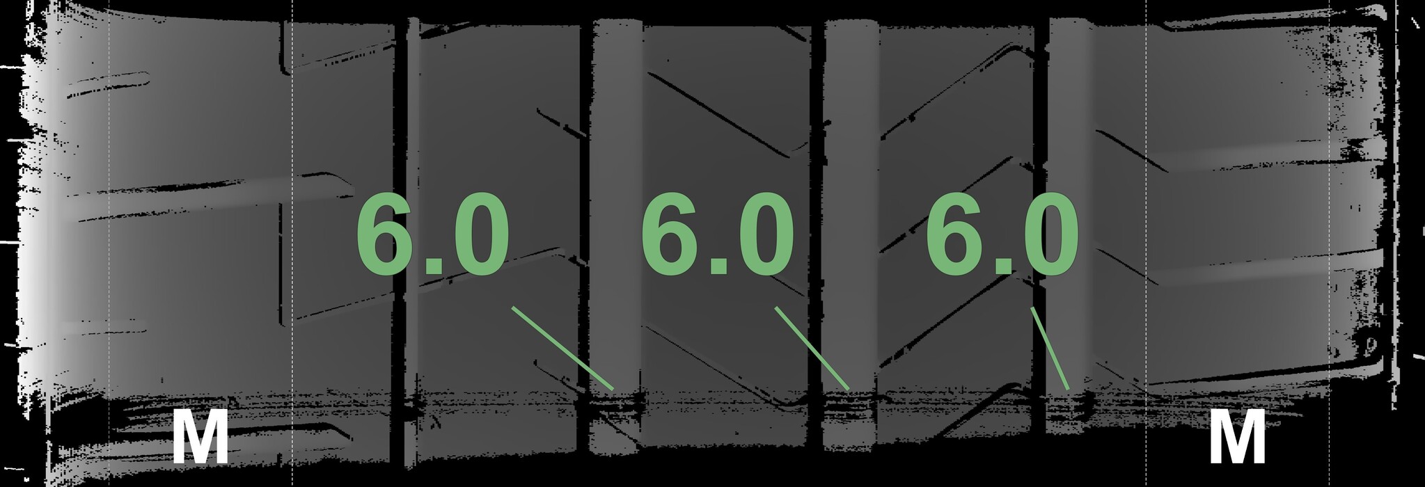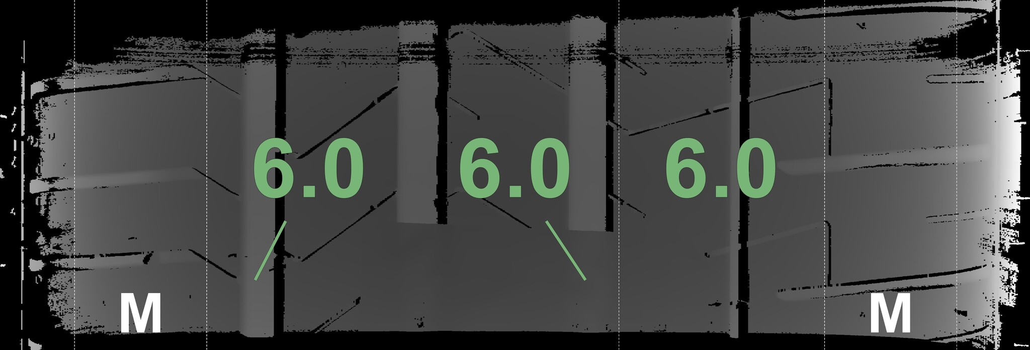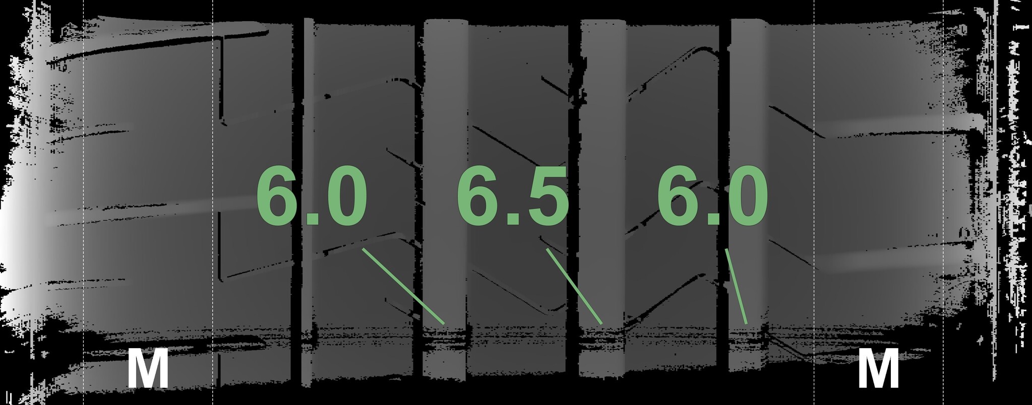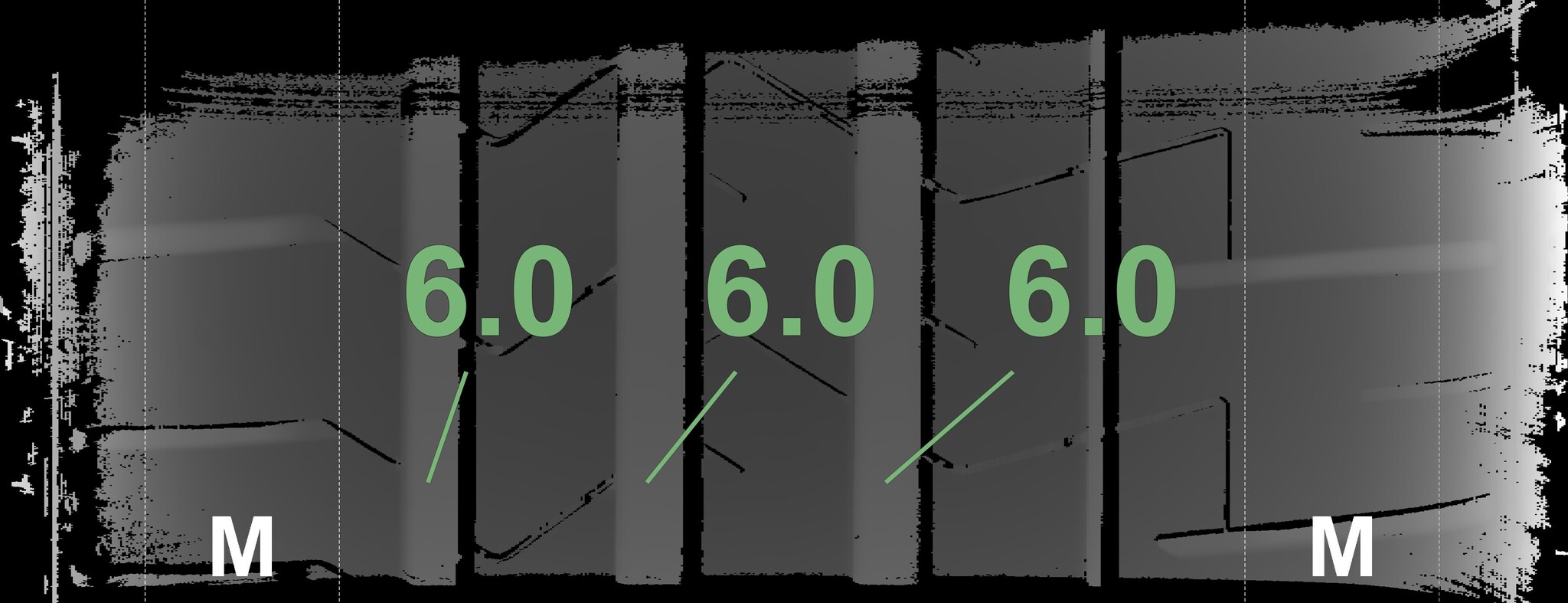 Condition | Profile depth | DOT | Front Left | Demo studs still visible | 6.0 mm | 4824 |