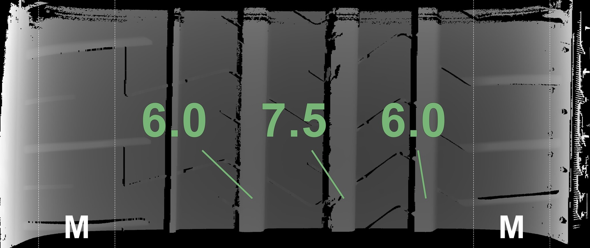 | Condition | Profile depth | DOT | Front Left | Demo knobs still visible | 6.0 mm | 4524 |