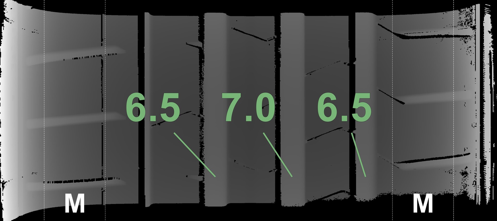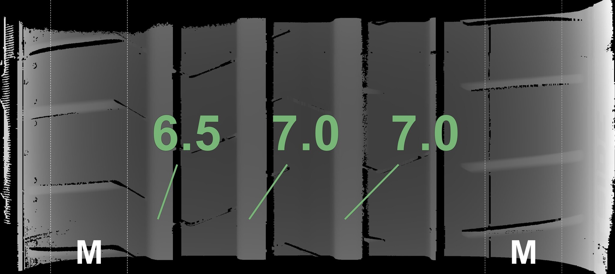 The measured tread depths and details of the rims are shown above.