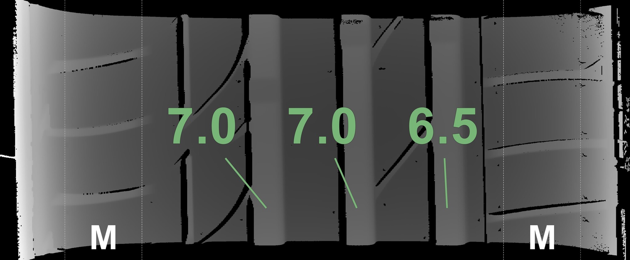 Condition | Profile depth | DOT | Rear Right | New | 6.5 mm | 0524 |