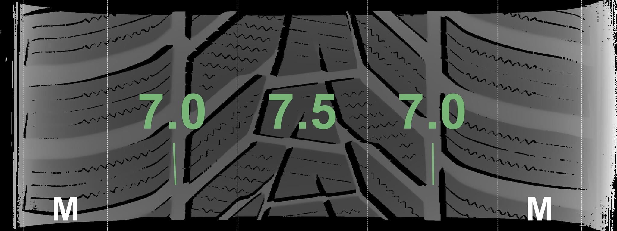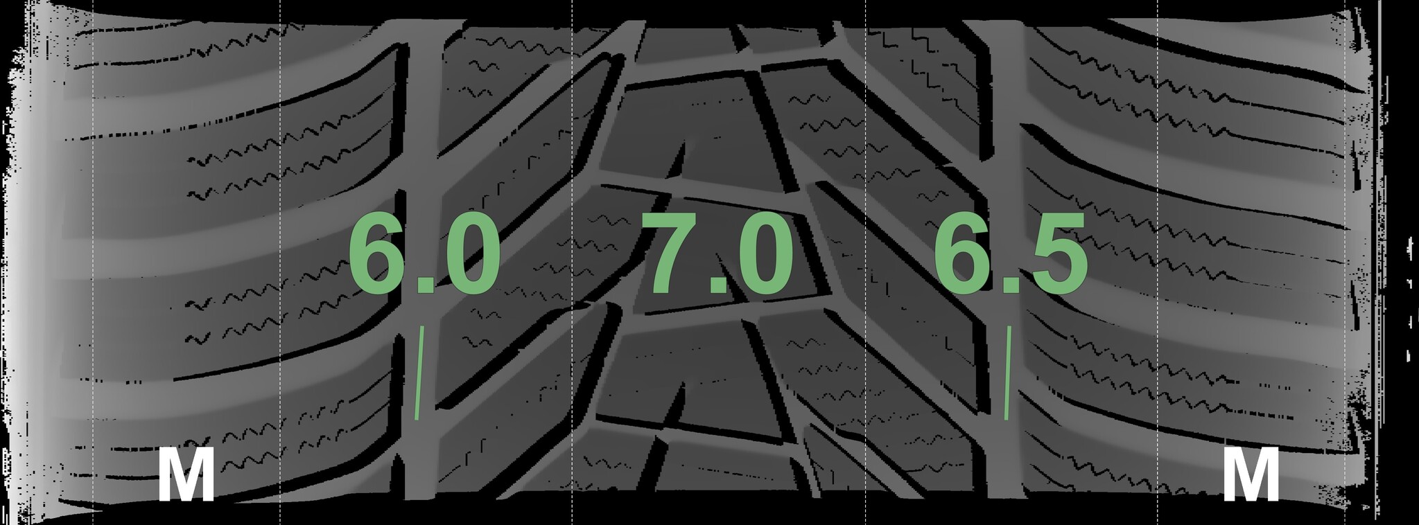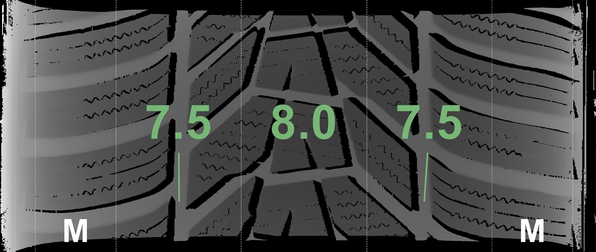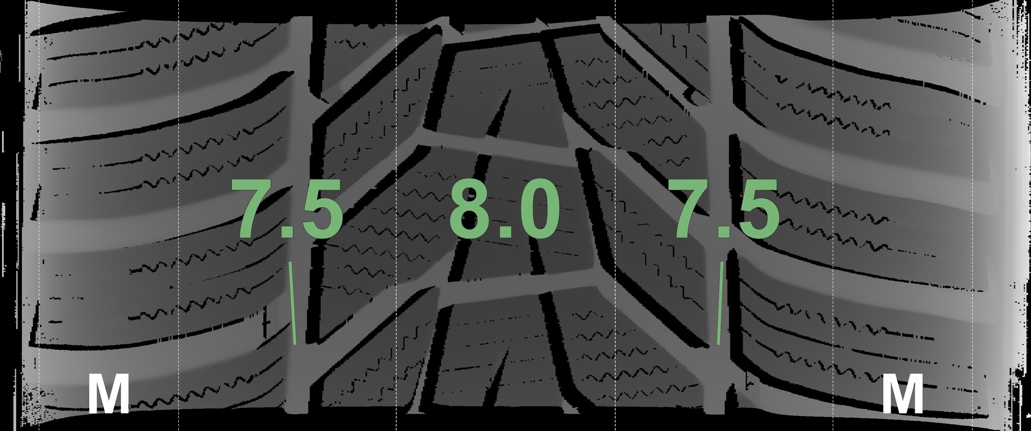 The measured tread depths and details of the rims are shown above.