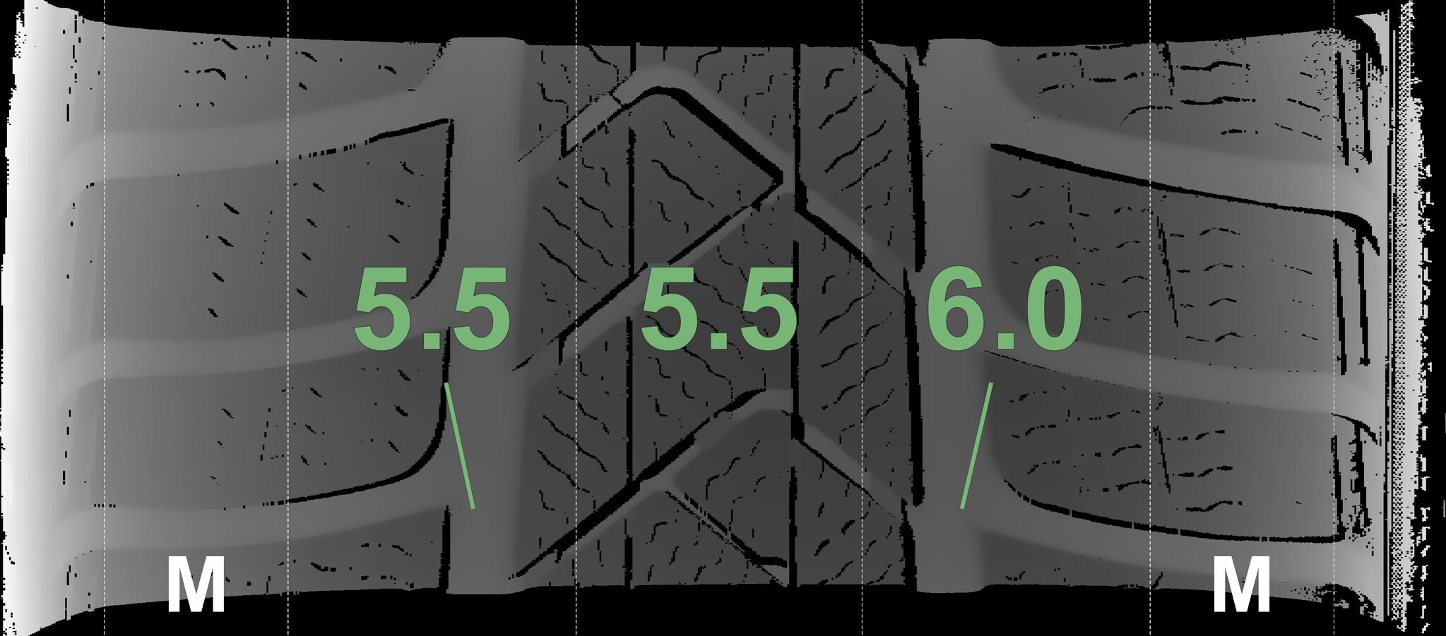 | Condition | Profile depth | DOT | Front Right | Used | 5.0 mm | 0920 |
