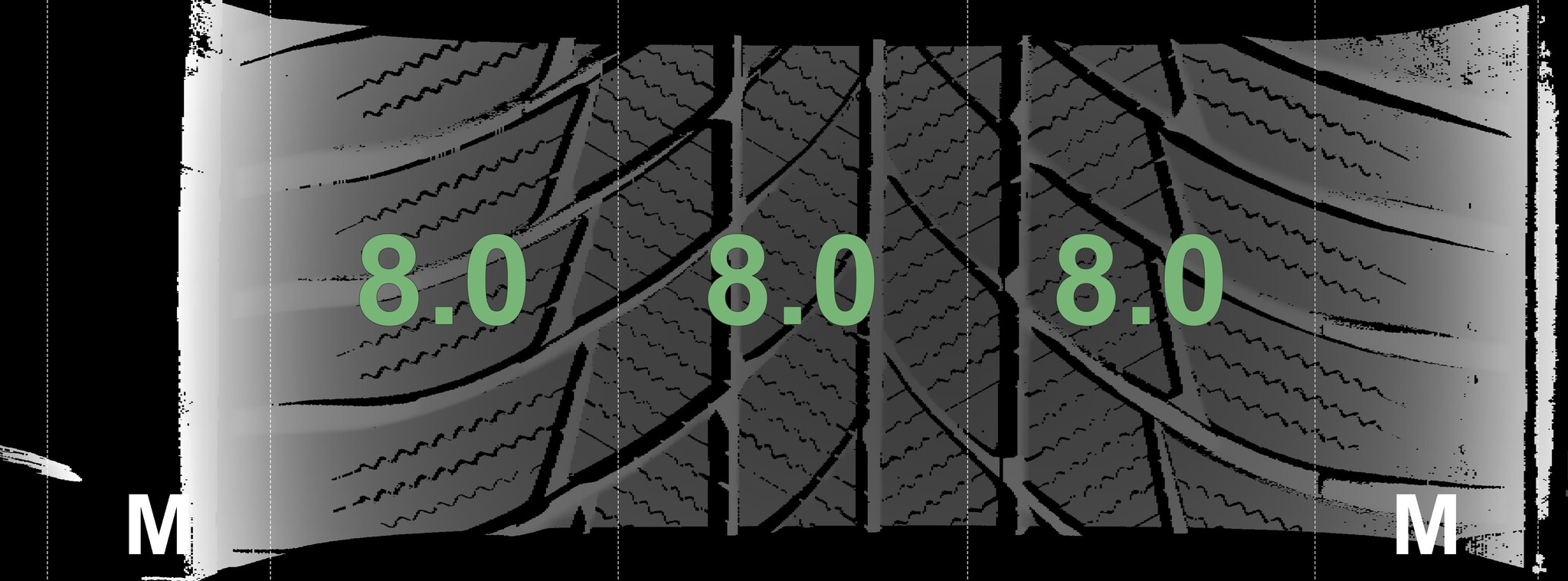 Condition | Profile depth | DOT | Rear Left | New | 8.0 mm | 4324 |