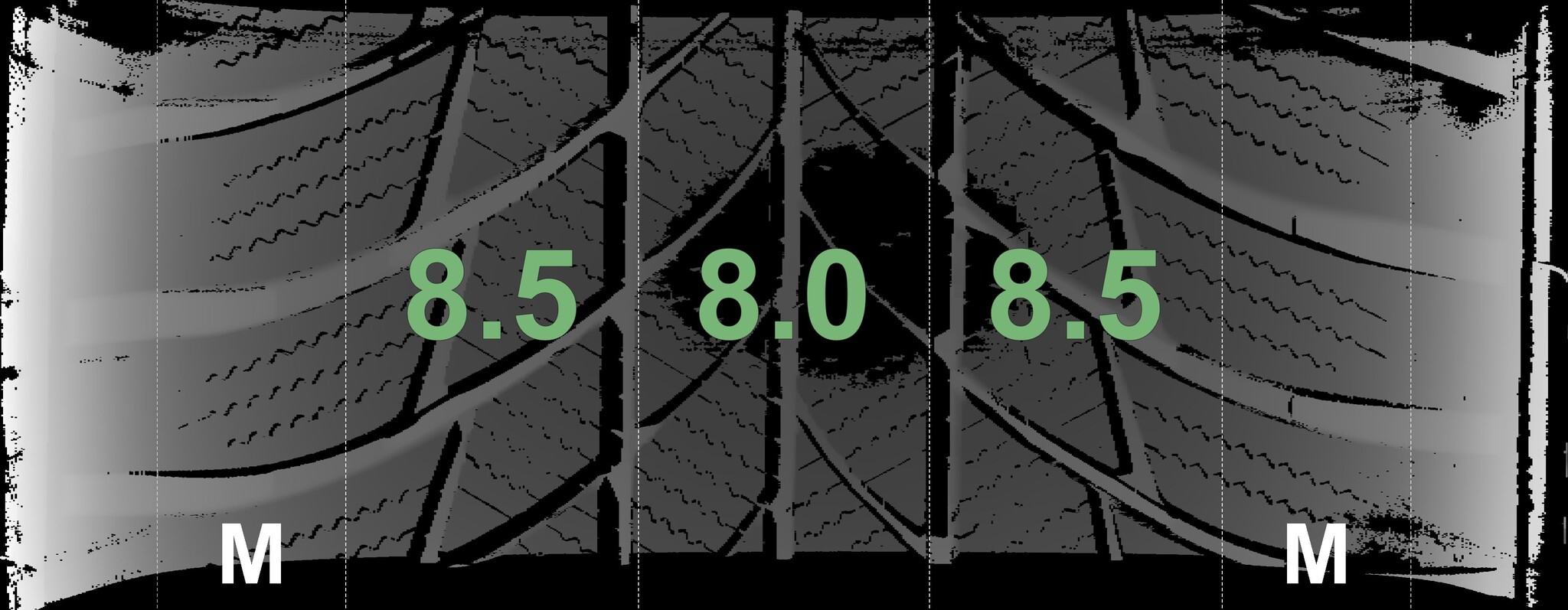 | Condition | Profile depth | DOT | Rear Left | New | 8.5 mm | 3725 |