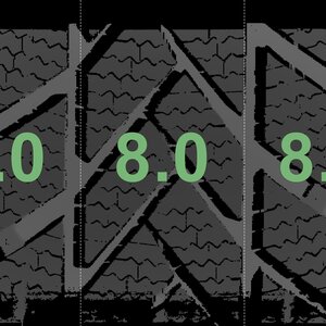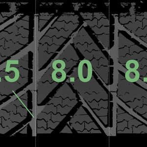 The measured tread depths and the details of the rims are shown above.