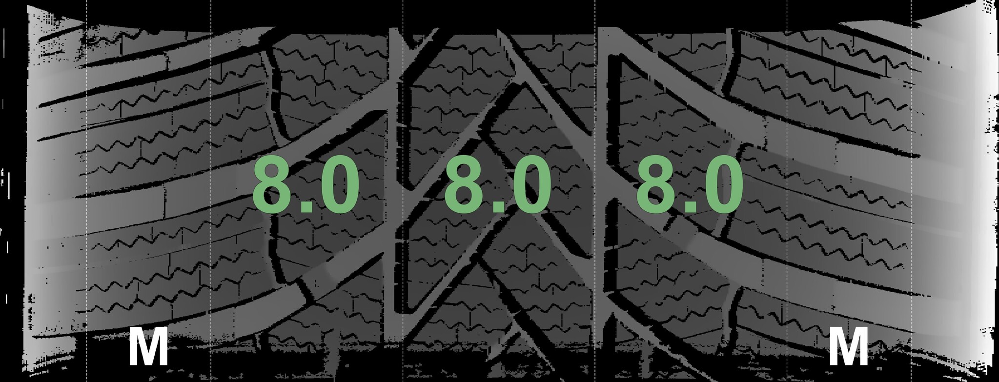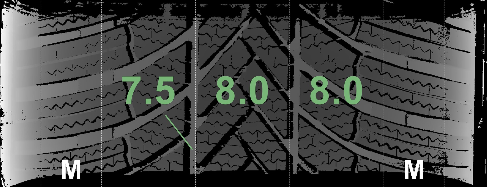 | Condition | Profile depth | DOT | Rear Right | New | 8.0 mm | 3725 |