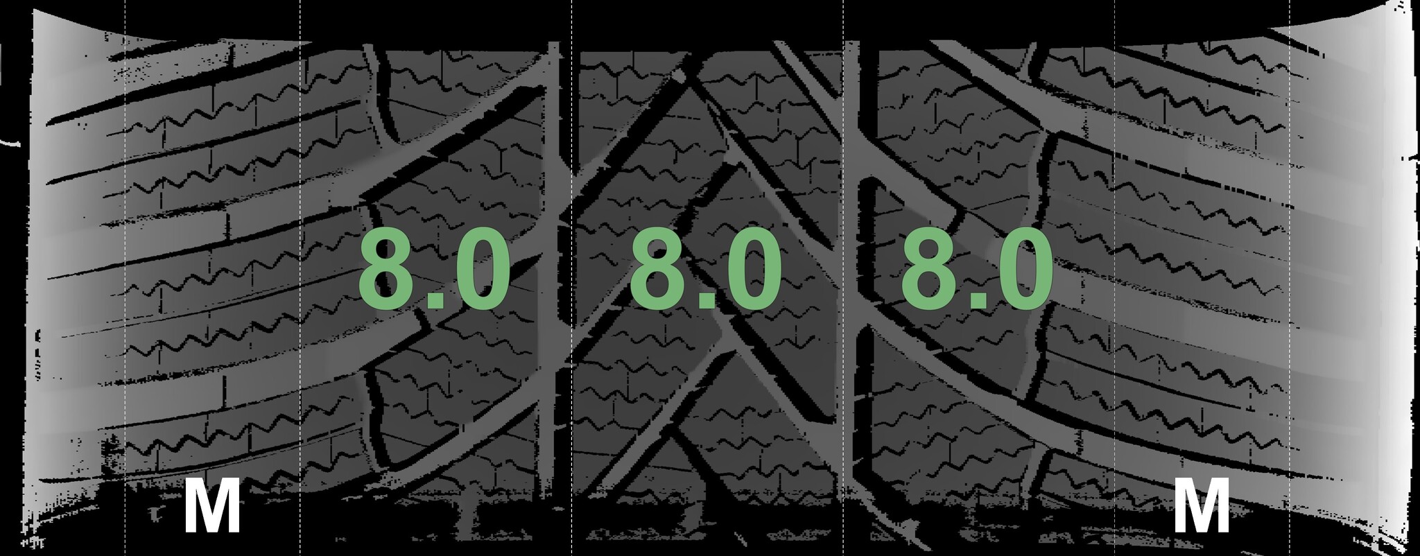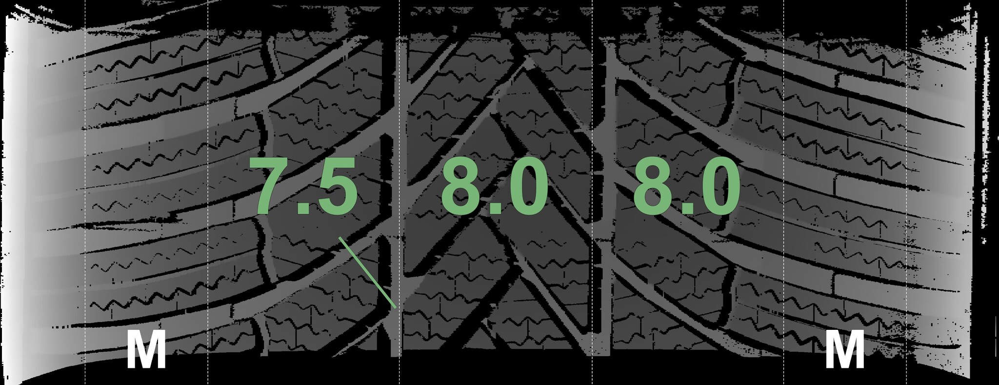 | Condition | Profile depth | DOT | Front Right | New | 8.0 mm | 3725 |