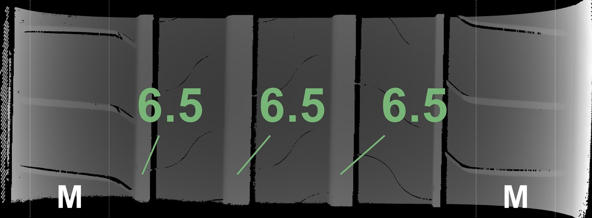 Condition | Profile depth | DOT | Rear Left Demo nubs still visible | 6.5 mm | 0322