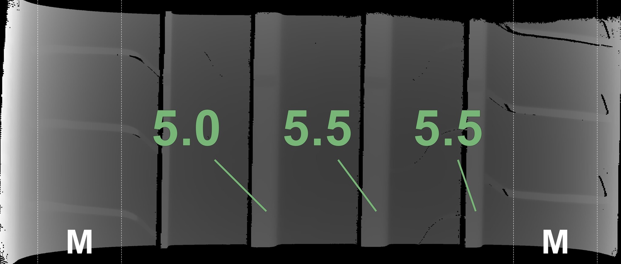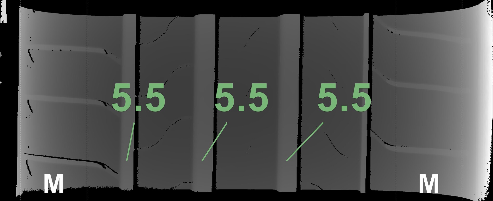 The measured tread depths and the details of the rims are shown above.