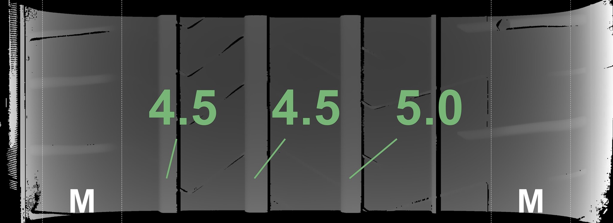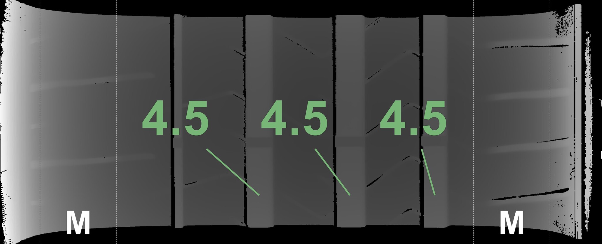 | Condition | Profile depth | DOT | Front Left | Used | 4.5 mm | 3121 |