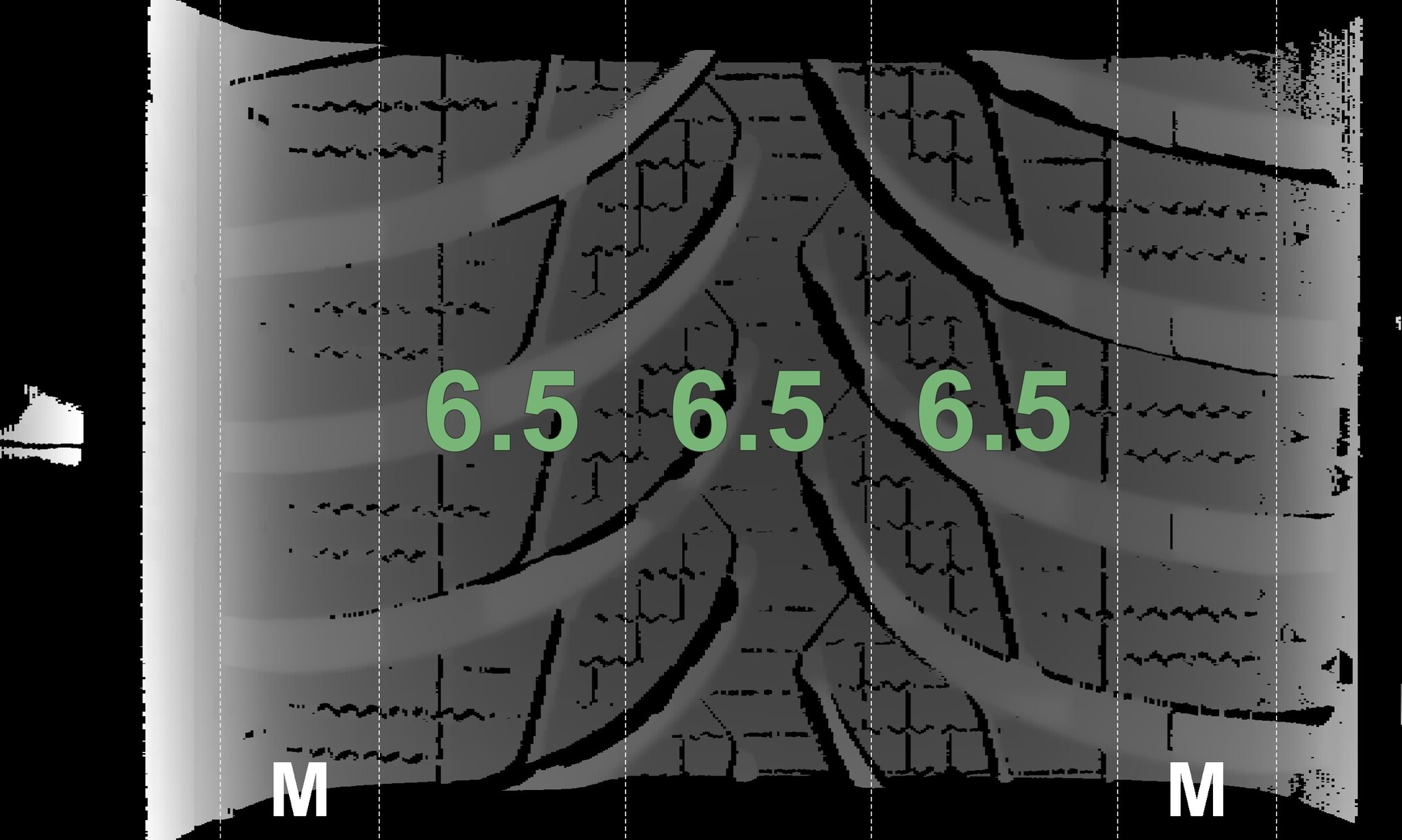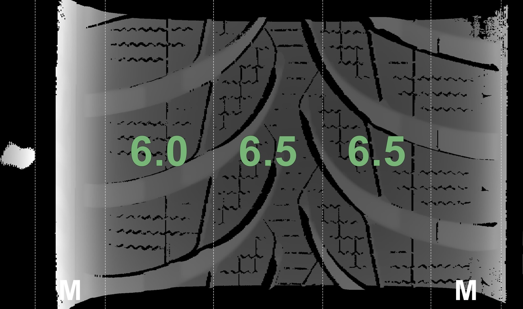 | Condition | Profile depth | DOT | Front Right | Used | 6.5 mm | 4120 |