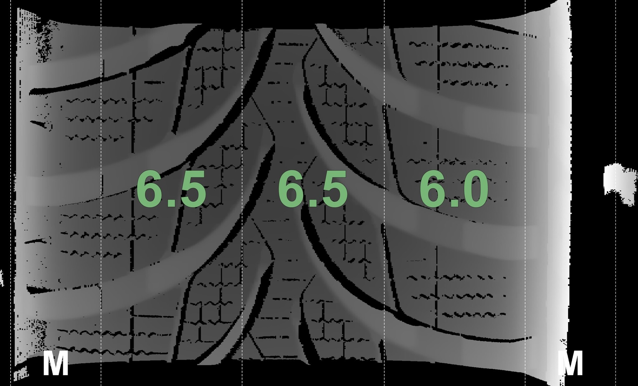 The measured tread depths and details of the rims are shown above.